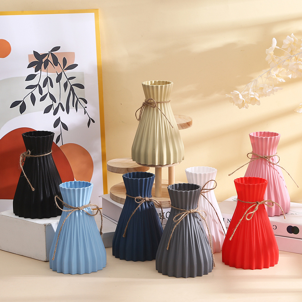 현대 미니멀 한 종이 접기 꽃병 허리 꽃병 창조적 인 대마 로프 목 실제 꽃 배열 세라믹 플라스틱 화분 도매스토어 가기