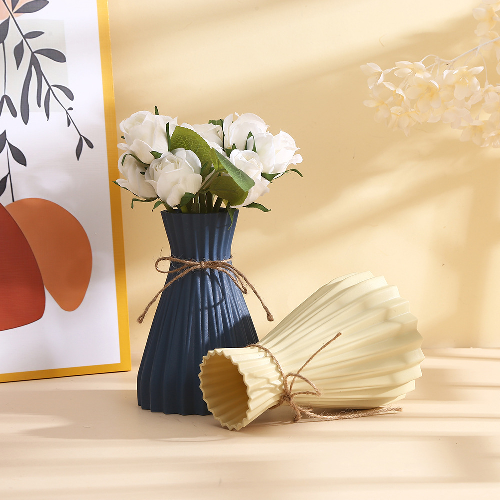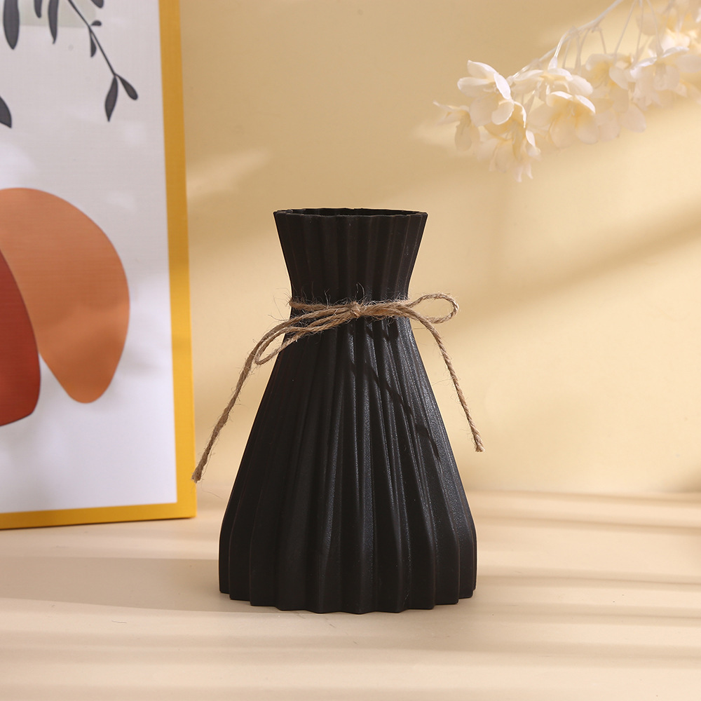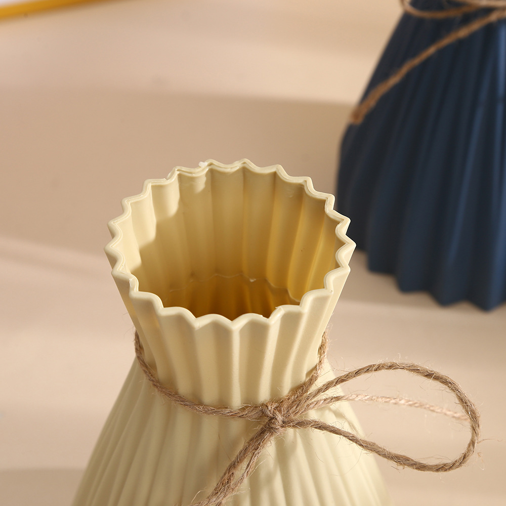 현대 미니멀 한 종이 접기 꽃병 허리 꽃병 창조적 인 대마 로프 목 실제 꽃 배열 세라믹 플라스틱 화분 도매
