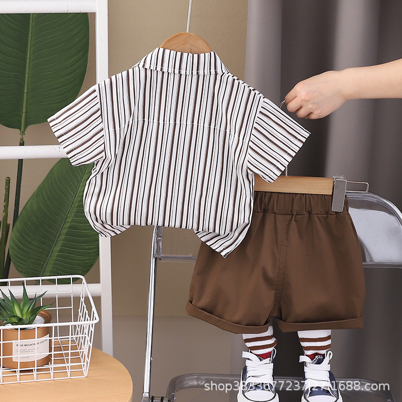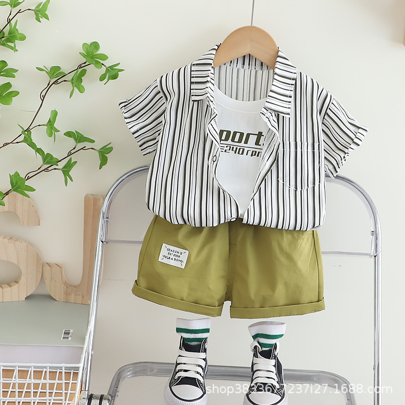 남자들의 여름 반팔 세트 새로운 스타일 아기 소년 옷 편지 스트레이트 카디건 가짜 3 피스 세트스토어 가기