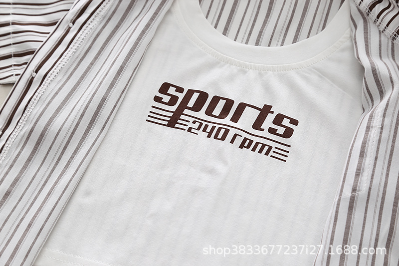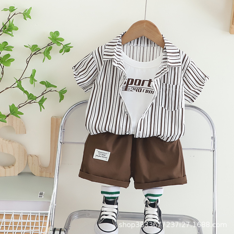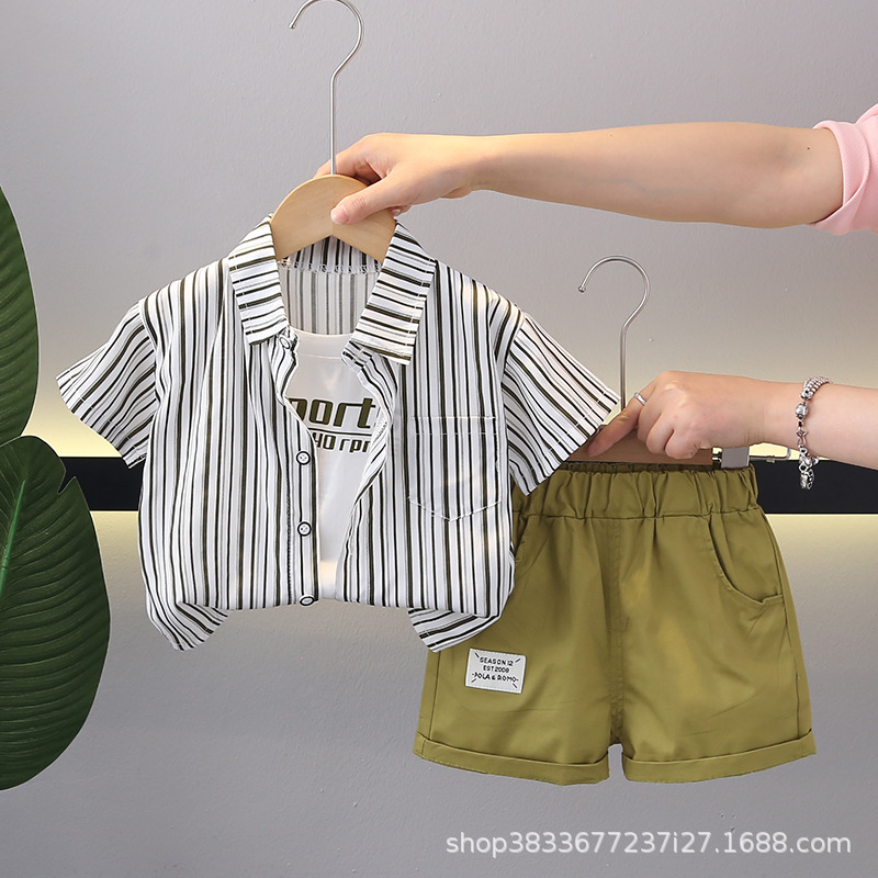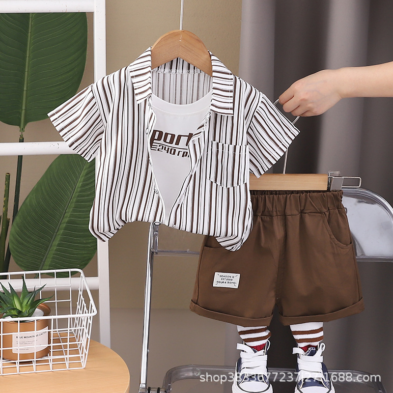 남자들의 여름 반팔 세트 새로운 스타일 아기 소년 옷 편지 스트레이트 카디건 가짜 3 피스 세트