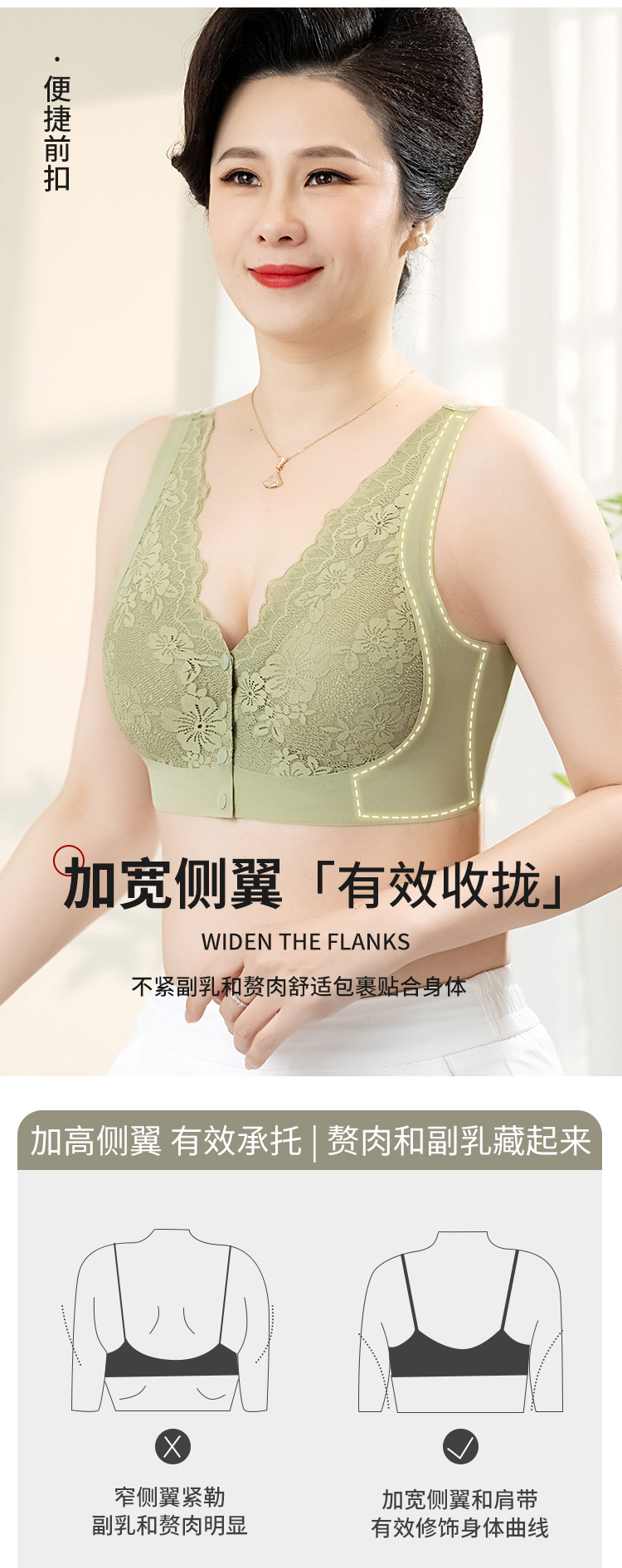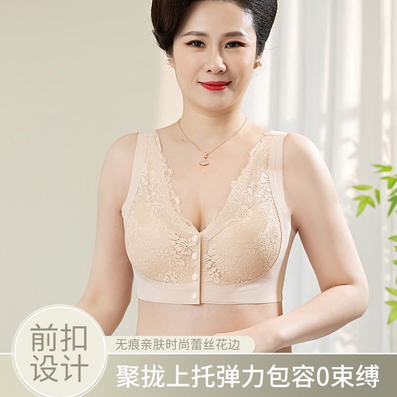 어머니의 브래지어, 속옷, 앞 단추, 레이스, 무봉제, 와이어 없음, 중년 여성의 대형 조끼 브래지어스토어 가기