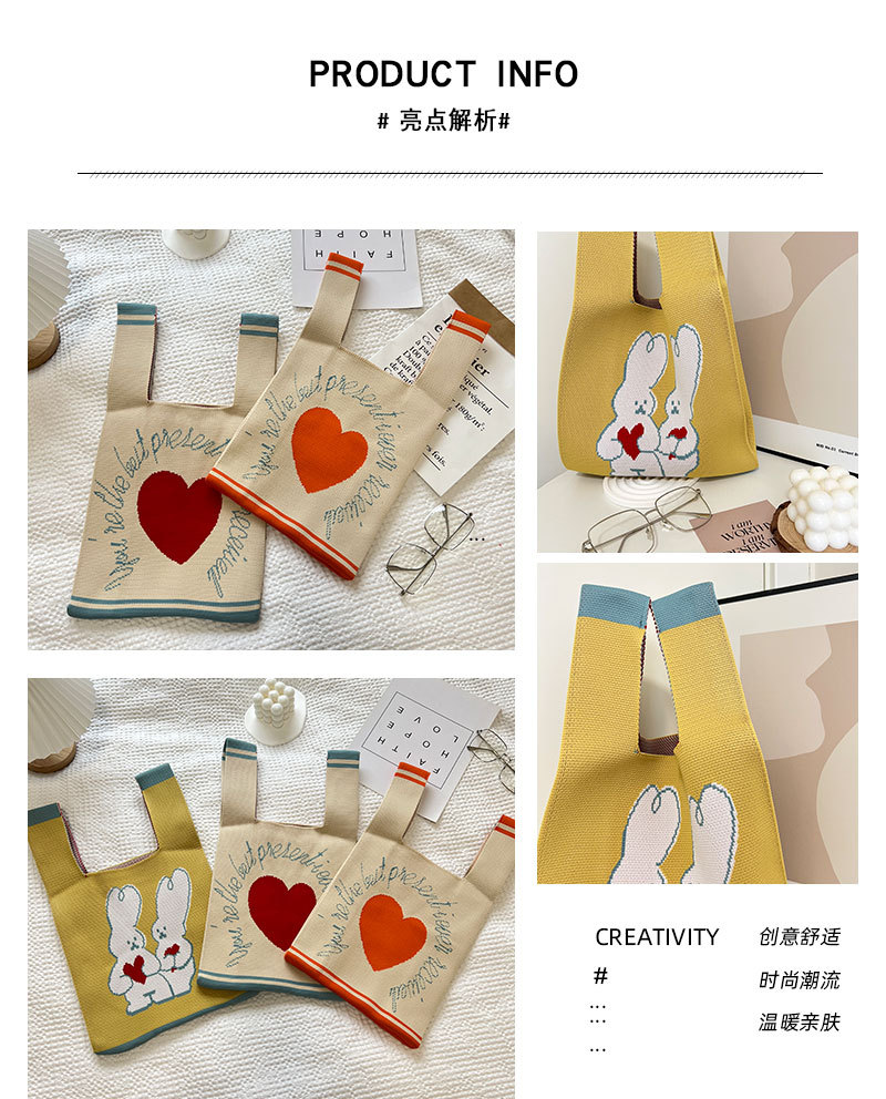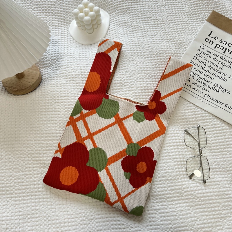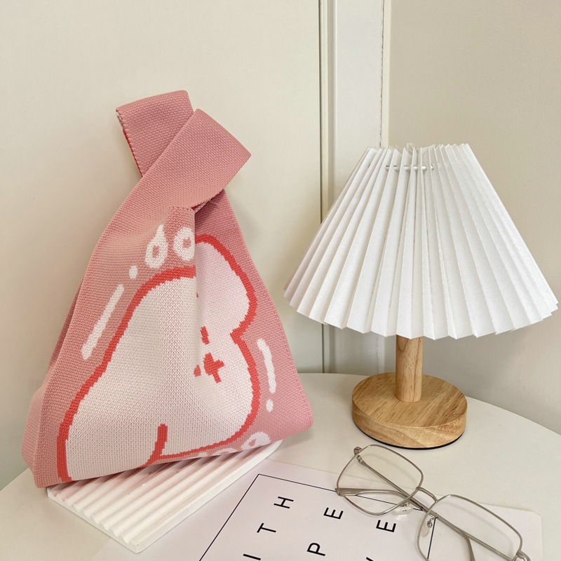 Ins 한국식 신형 소형 신선한 니트 핸드 핸드백 경량 단순 올 매치 토트 런치 박스 미들 백스토어 가기