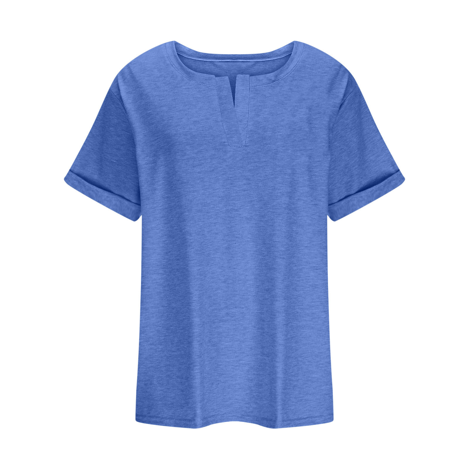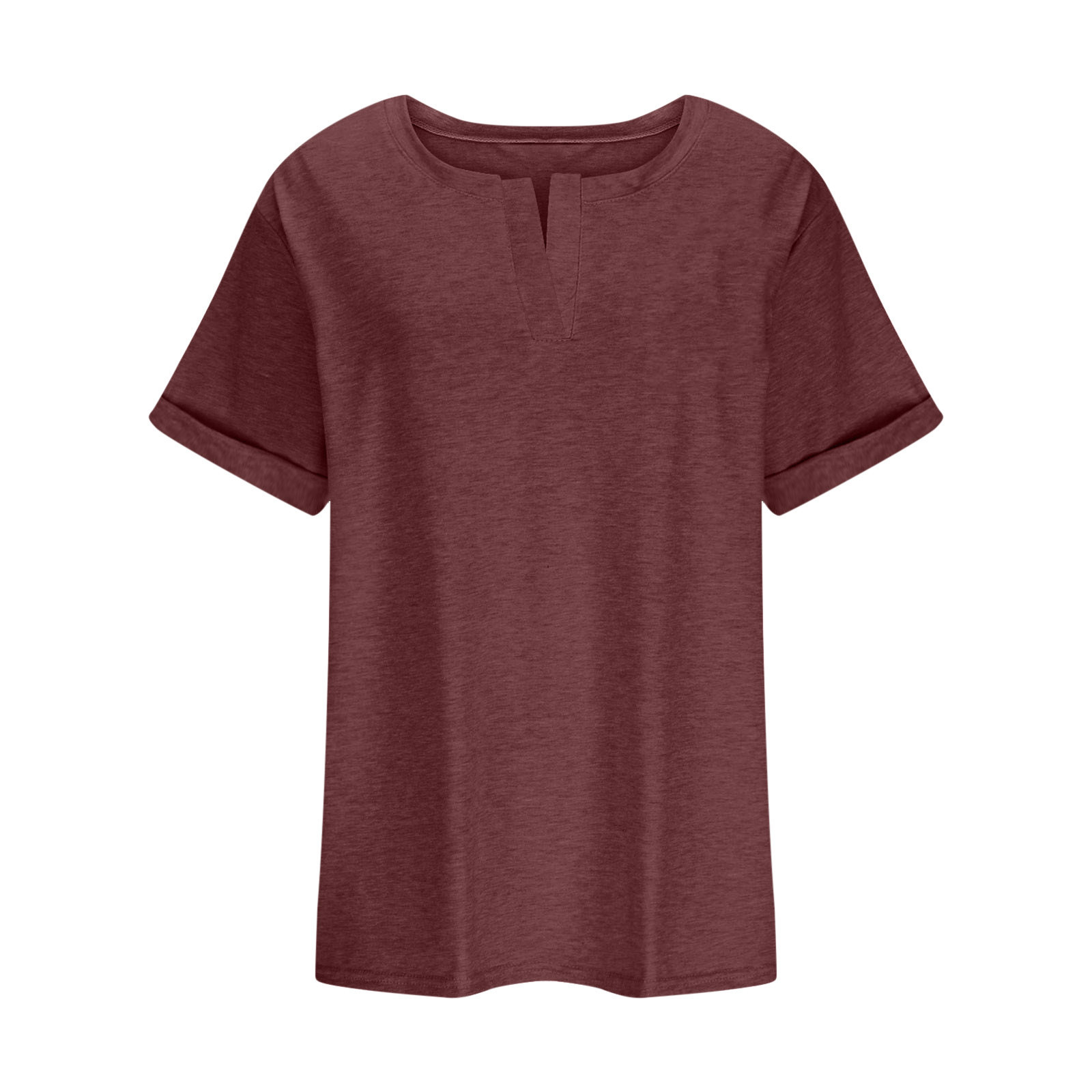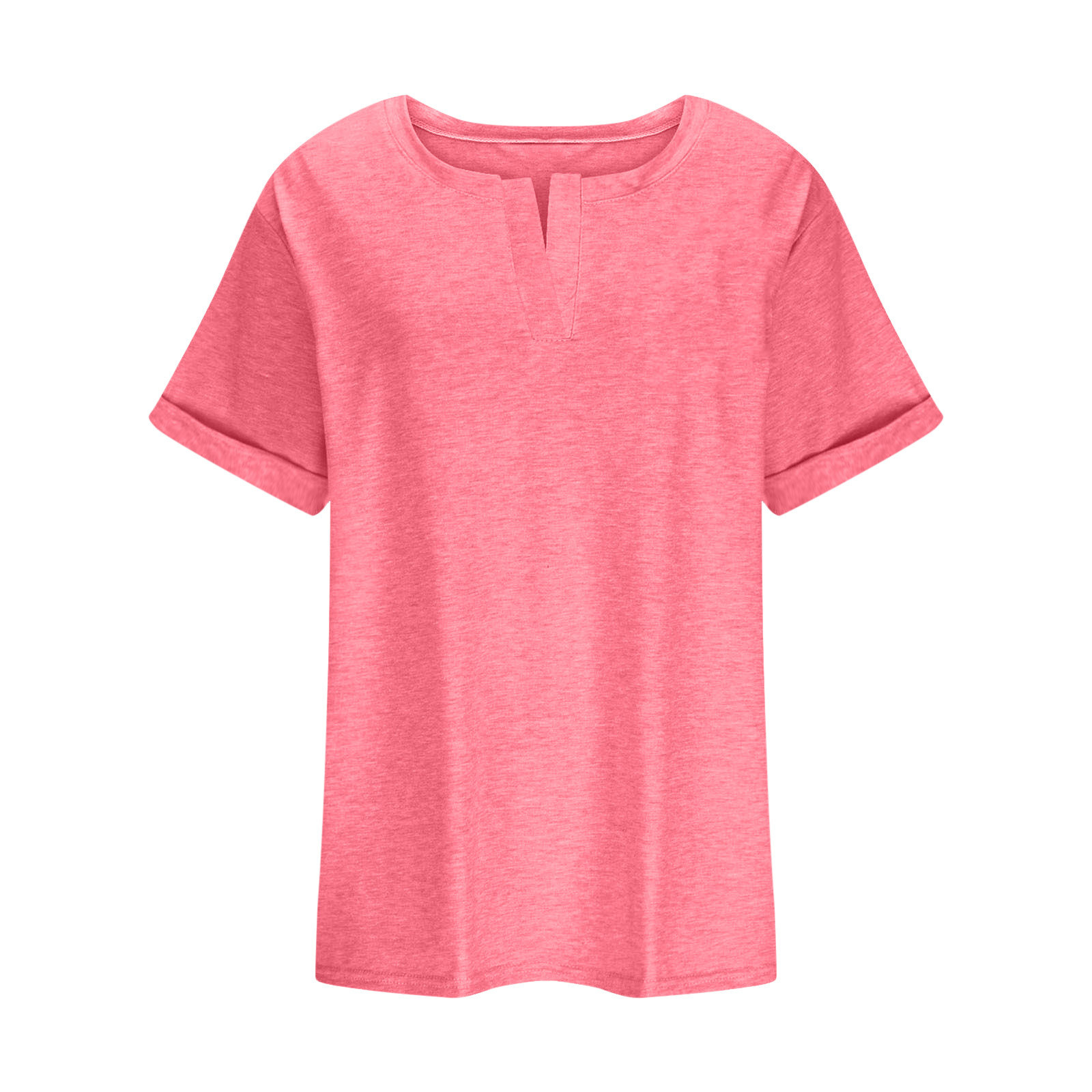 2024 아마존 독립 역 대외 무역 유럽과 미국의 국경 봄과 여름 새로운 탑 v 넥 반팔 루즈 티셔츠 여성용스토어 가기