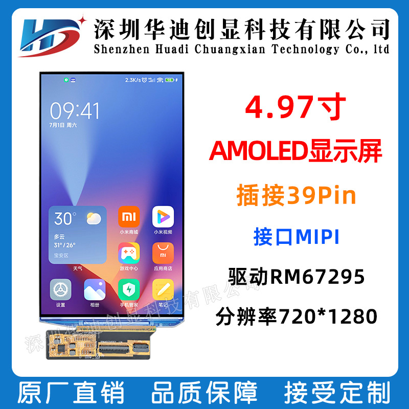 4.97 인치 5 인치 AMOLED 디스플레이 720*1280 해상도 용량 터치 산업용 MIPI 인터페이스스토어 가기