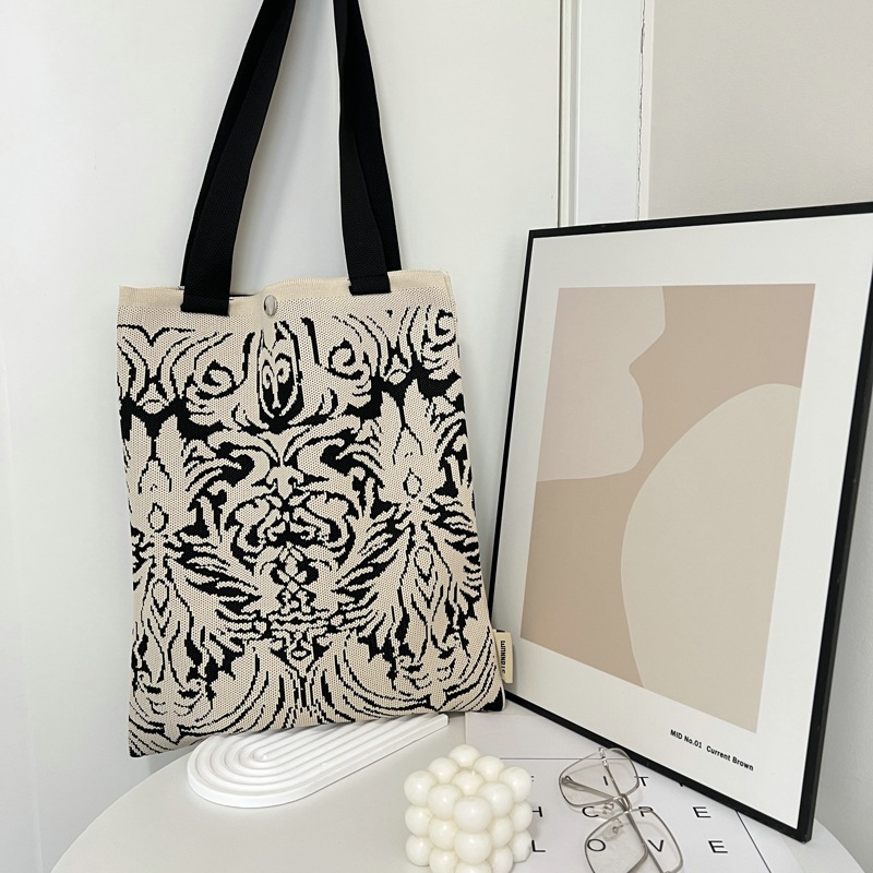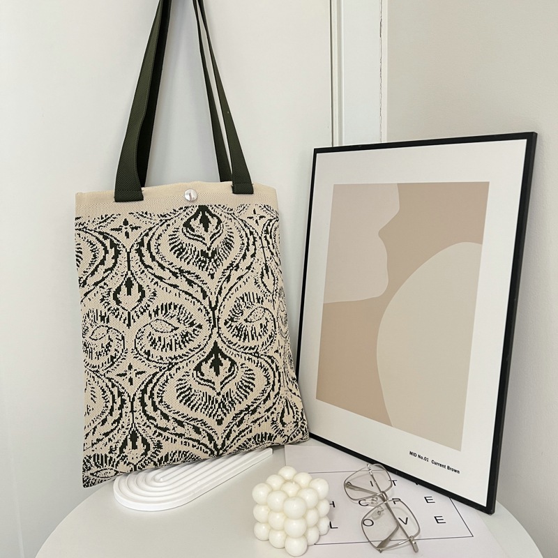 여름 새로운 대비 컬러 스트라이프 니트 백 일본과 한국 대용량 어깨 가방 통근 핸드 백