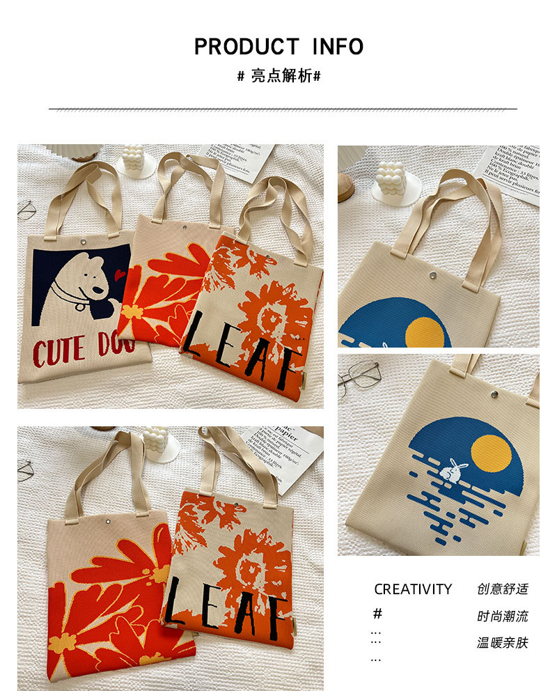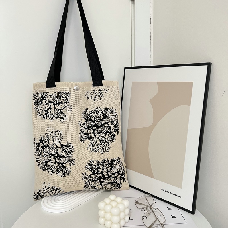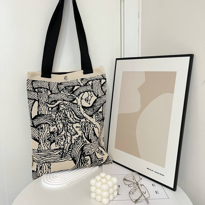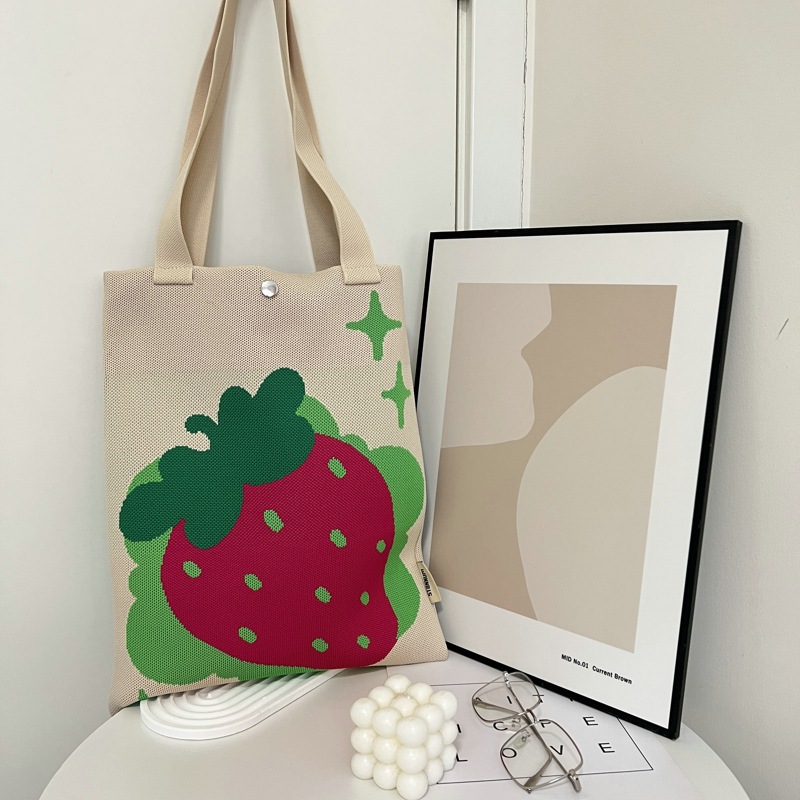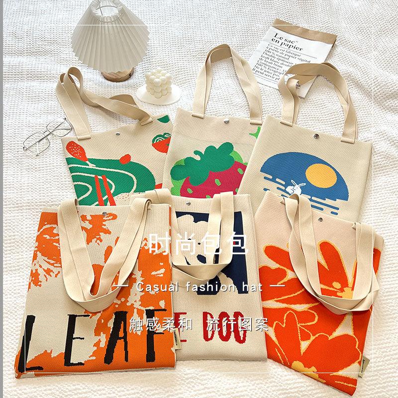 여름 새로운 대비 컬러 스트라이프 니트 백 일본과 한국 대용량 어깨 가방 통근 핸드 백스토어 가기