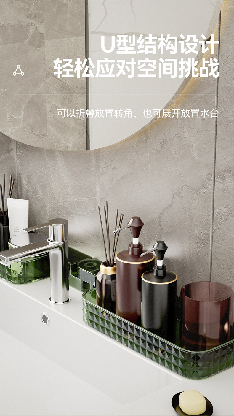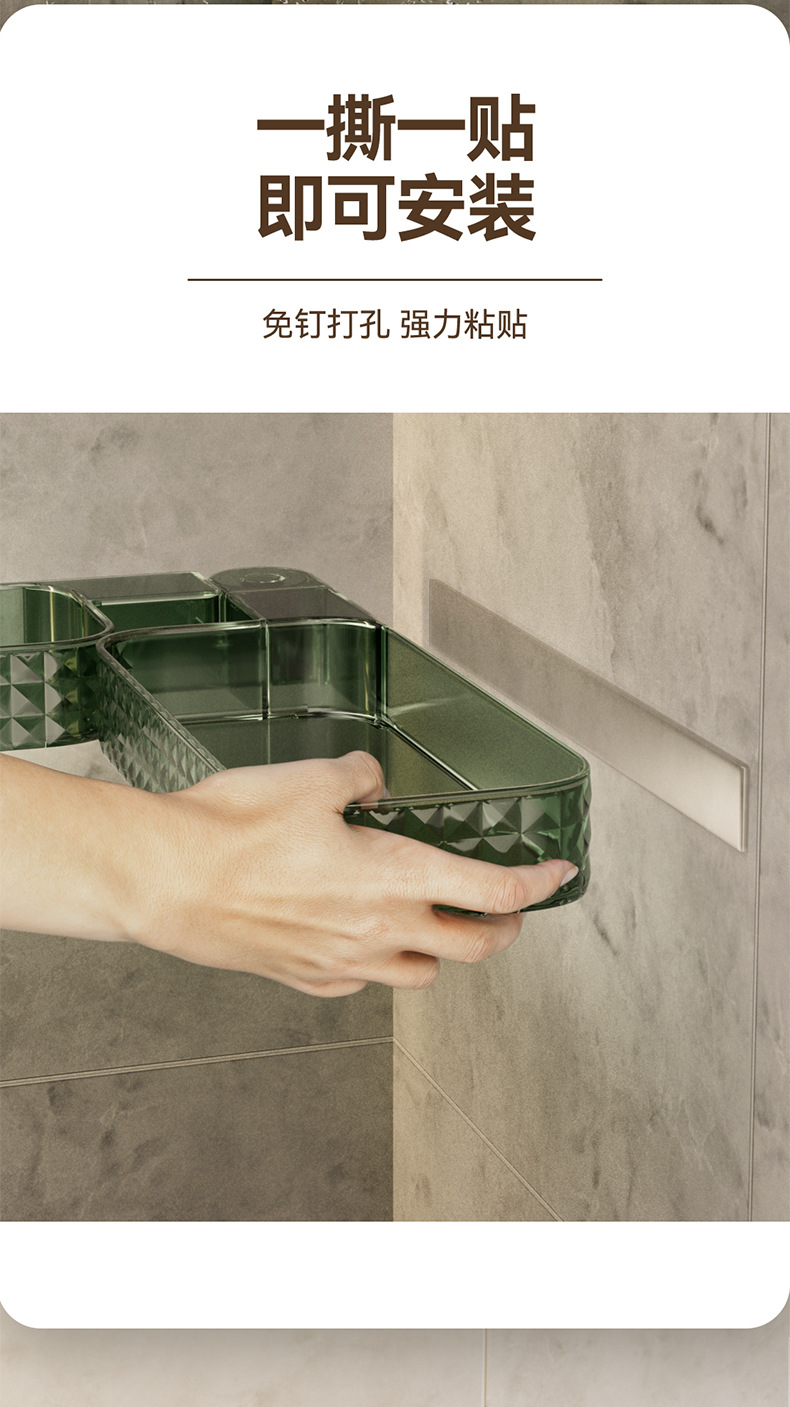 코너형 수납 선반, 고급스러운 욕실 화장대, 무타공 화장품 정리함, 데스크탑 수납함