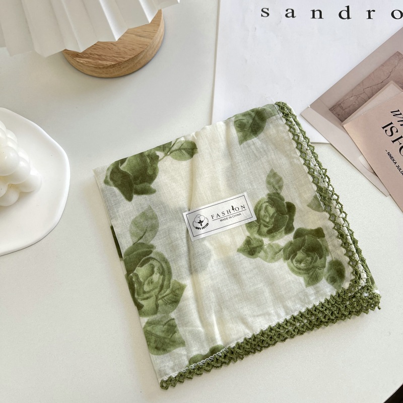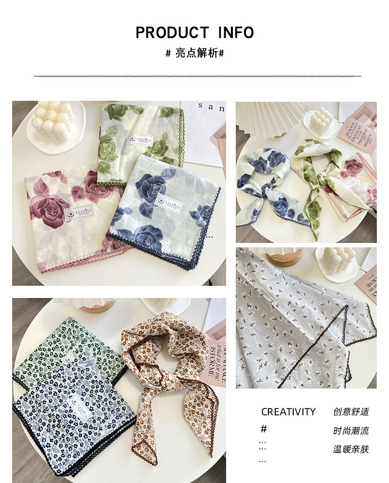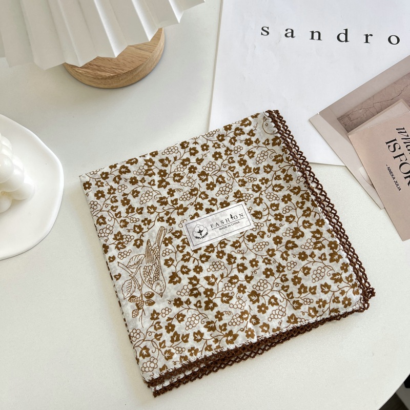 2024 한국 스타일 새로운 도착 올매치 예술적 꽃 광장 스카프 여름과 가을 빈티지 장식 작은 스카프 스카프스토어 가기