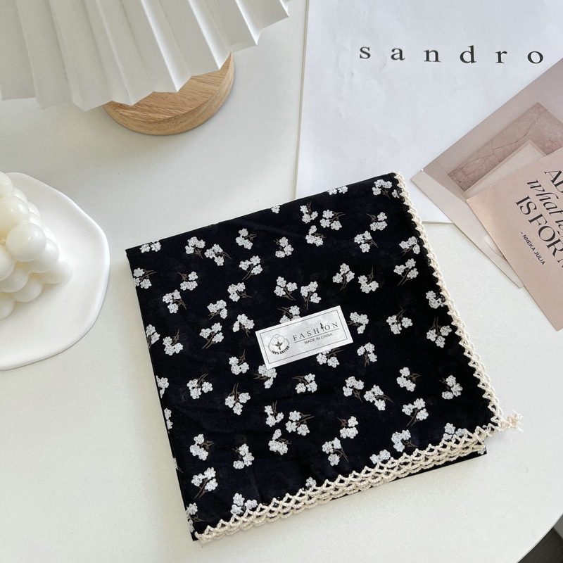 2024 한국 스타일 새로운 도착 올매치 예술적 꽃 광장 스카프 여름과 가을 빈티지 장식 작은 스카프 스카프
