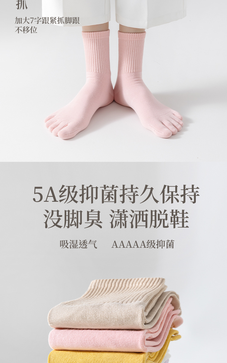 5 손가락 양말 아동면 미드 튜브 스포츠 양말 봄 가을면 항균 탈취제 땀 흡수성 여성 양말 여름