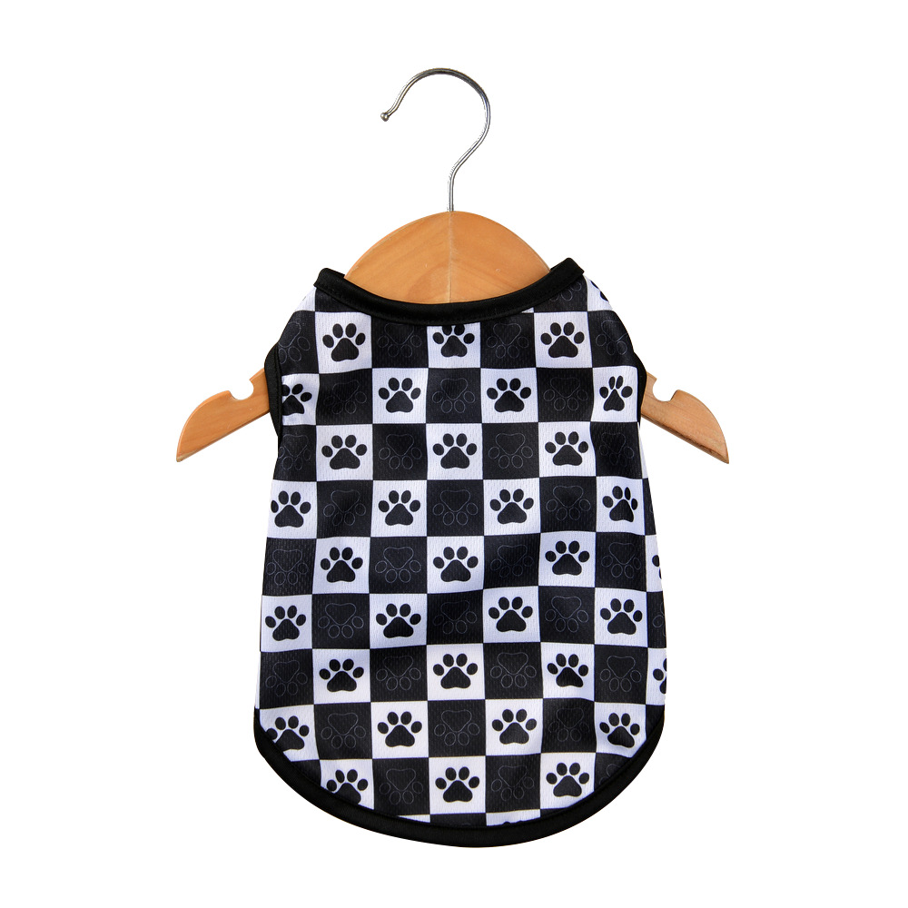 봄과 여름 새로운 애완견 옷 작은 개 얇은 인쇄 조끼 레오파드 무늬 발자국 격자 무늬 테디 베어 도매스토어 가기