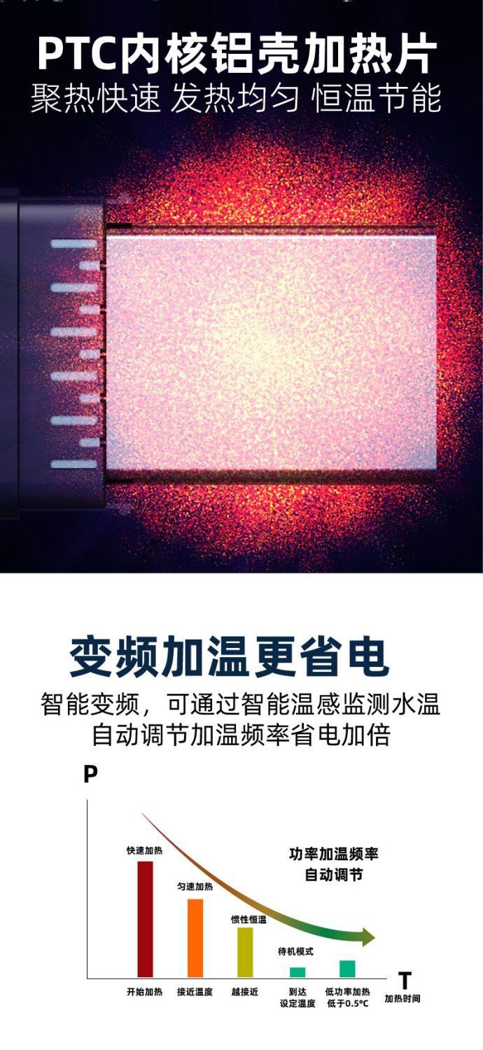 Yut 물고기 탱크 가열 막대 자동 일정한 온도 가변 주파수 절전 히터 작은 거북이 가열 막대 ptc 가열 막대
