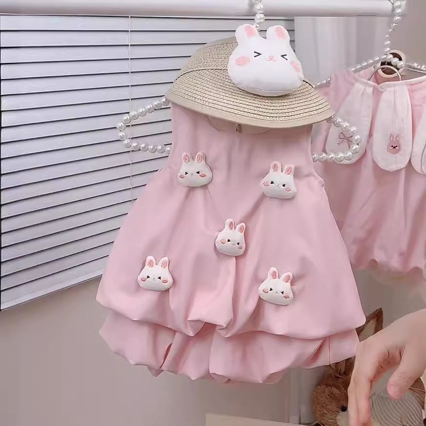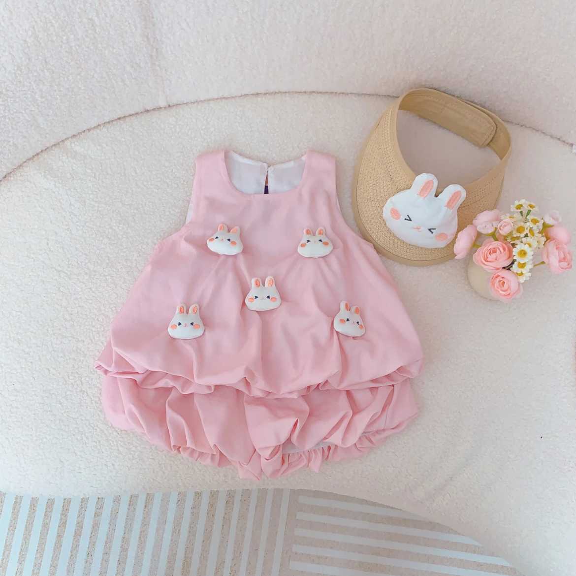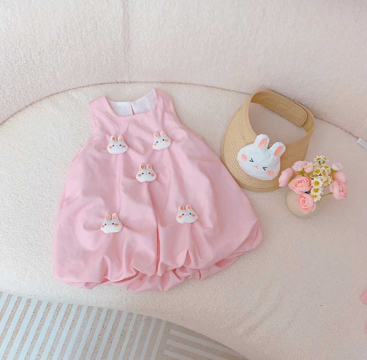여아 2025 여름 신상 스타일, 다용도 핑크색 귀여운 민소매 면 드레스, 베이비 버드 스커트 세트스토어 가기