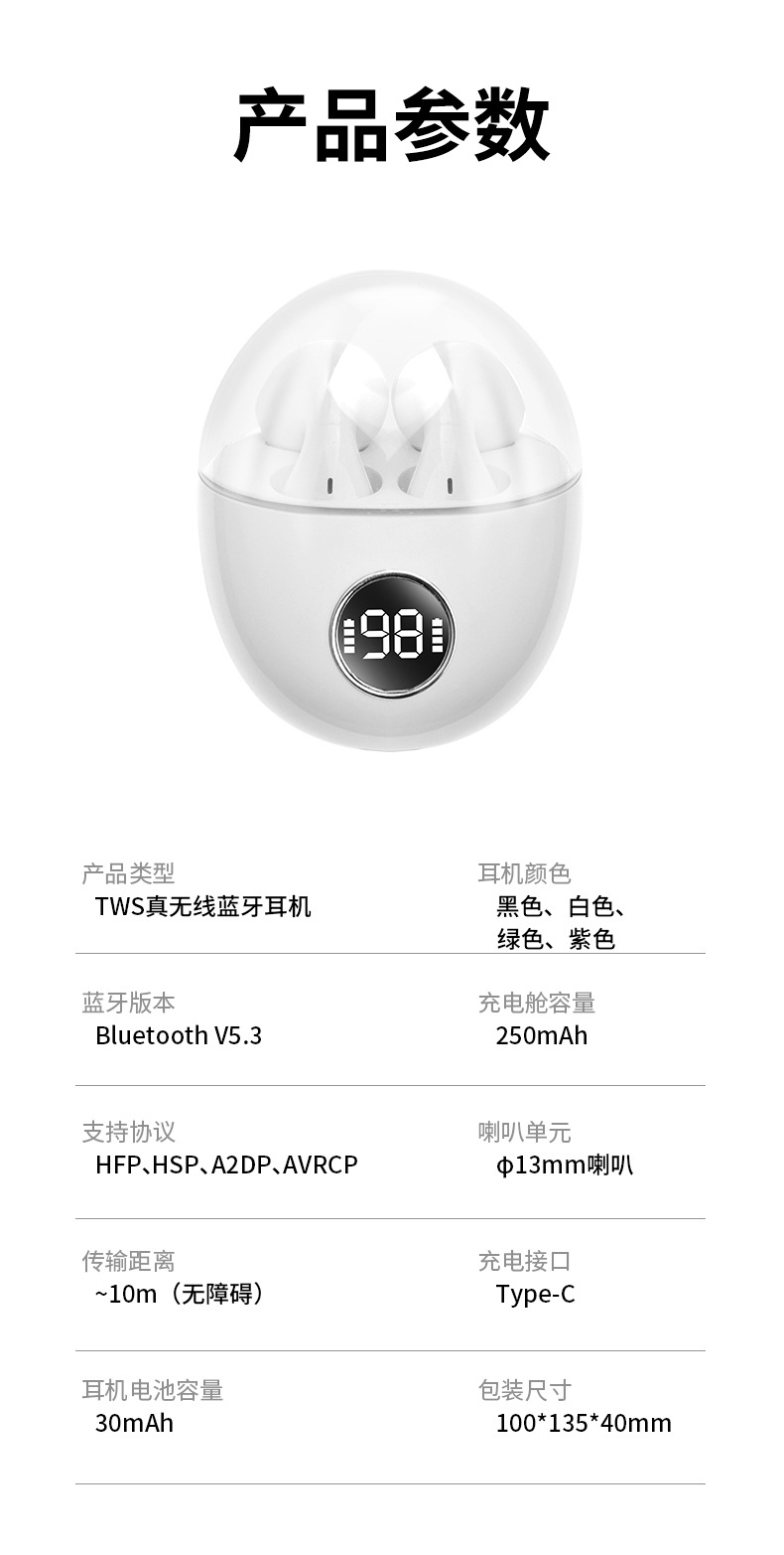 서브 우퍼 투명 TWS 진정한 무선 블루투스 헤드셋 충전 빈 5.3 바이노럴 인 이어 스테레오 긴 내구성