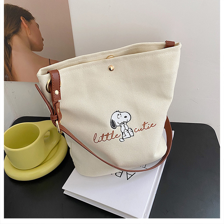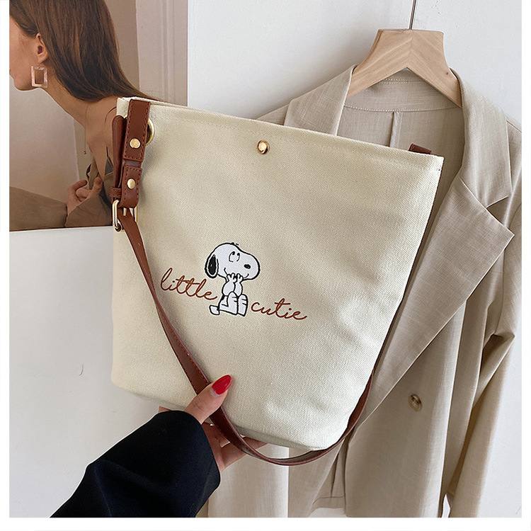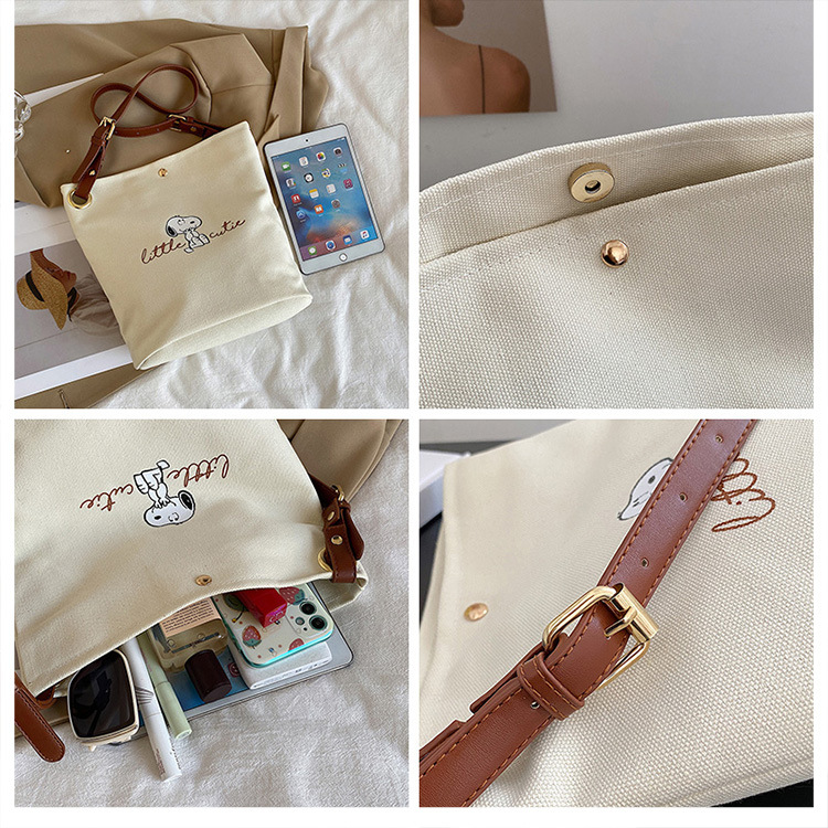 2024 봄과 여름 새로운 캔버스 여성 가방 귀여운 만화 패션 만화 어깨 대각선 핸드백 도매스토어 가기