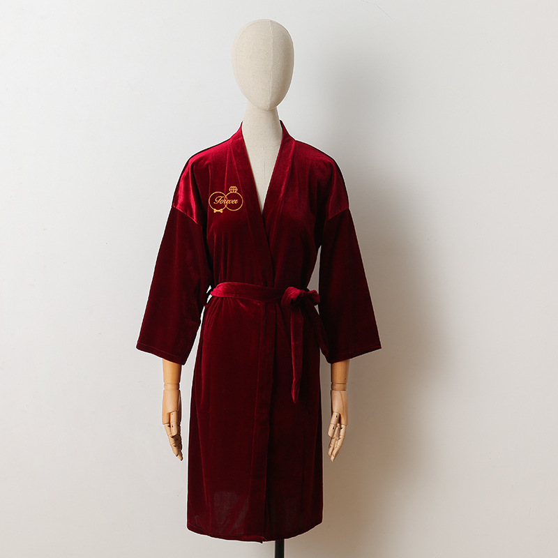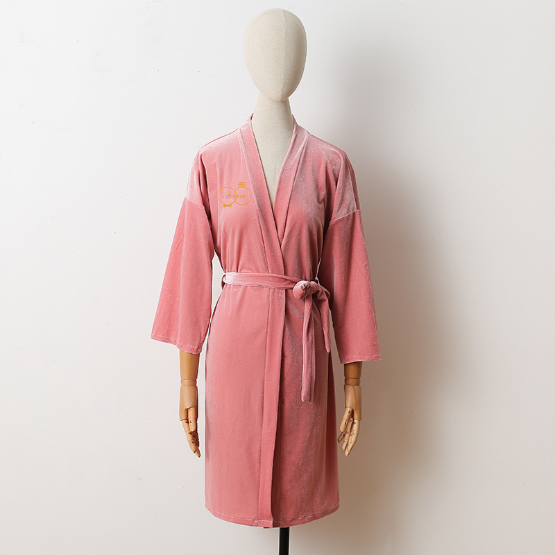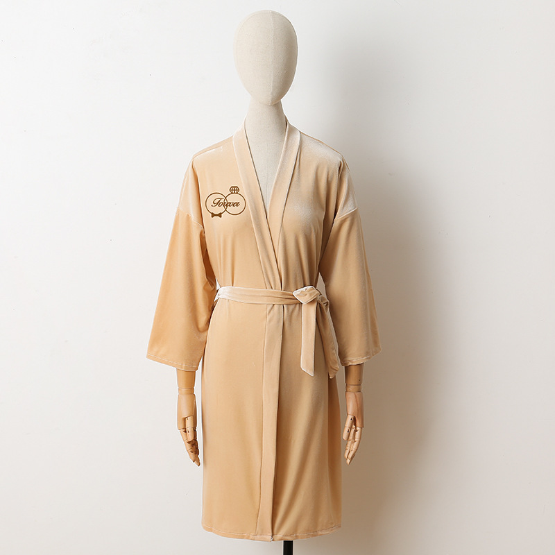 신부 아침 가운 여성 잠옷 결혼식 메이크업 신부 들러리 그룹 기모노 한국 골드 벨벳 카디건 목욕 가운