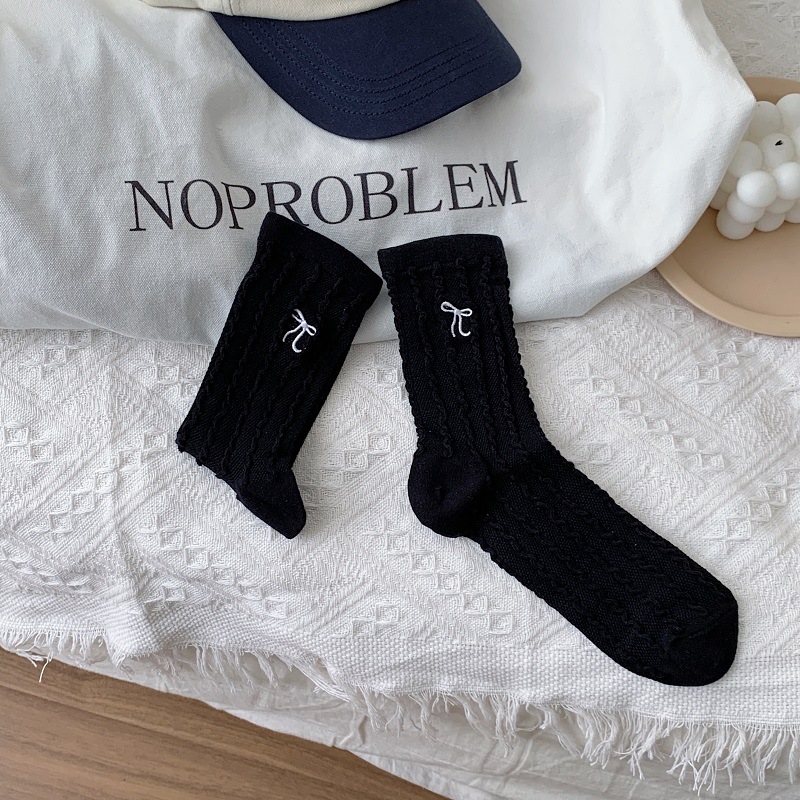 봄과 여름 메쉬 발레 스타일 미우 스타일 보우 양말 여성 중간 길이 양말 솔리드 컬러 트위스트 일본 스타일 JK 스타킹스토어 가기
