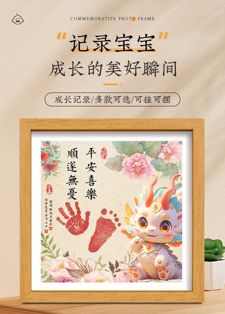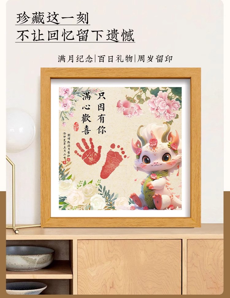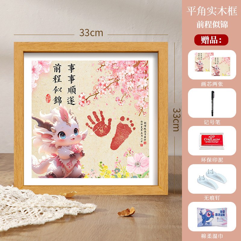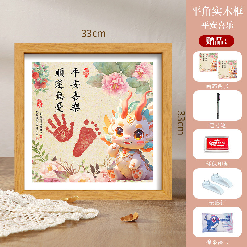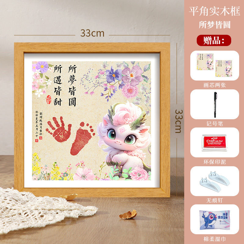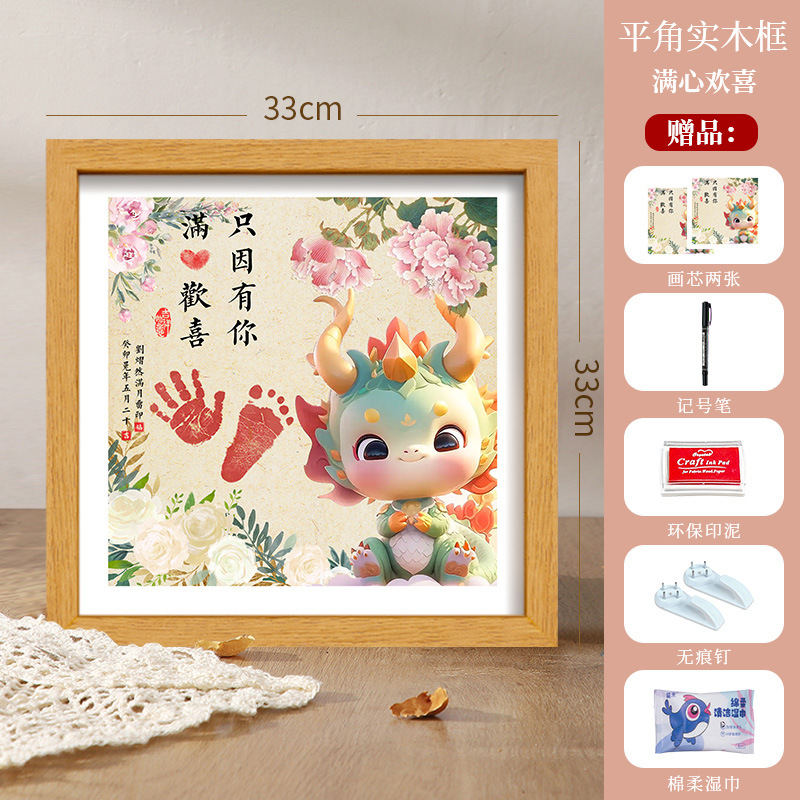 드래곤 베이비 보름달 백일 발자국 기념 사진 프레임 핑 행복한 발자국 출생 장식품 도매스토어 가기