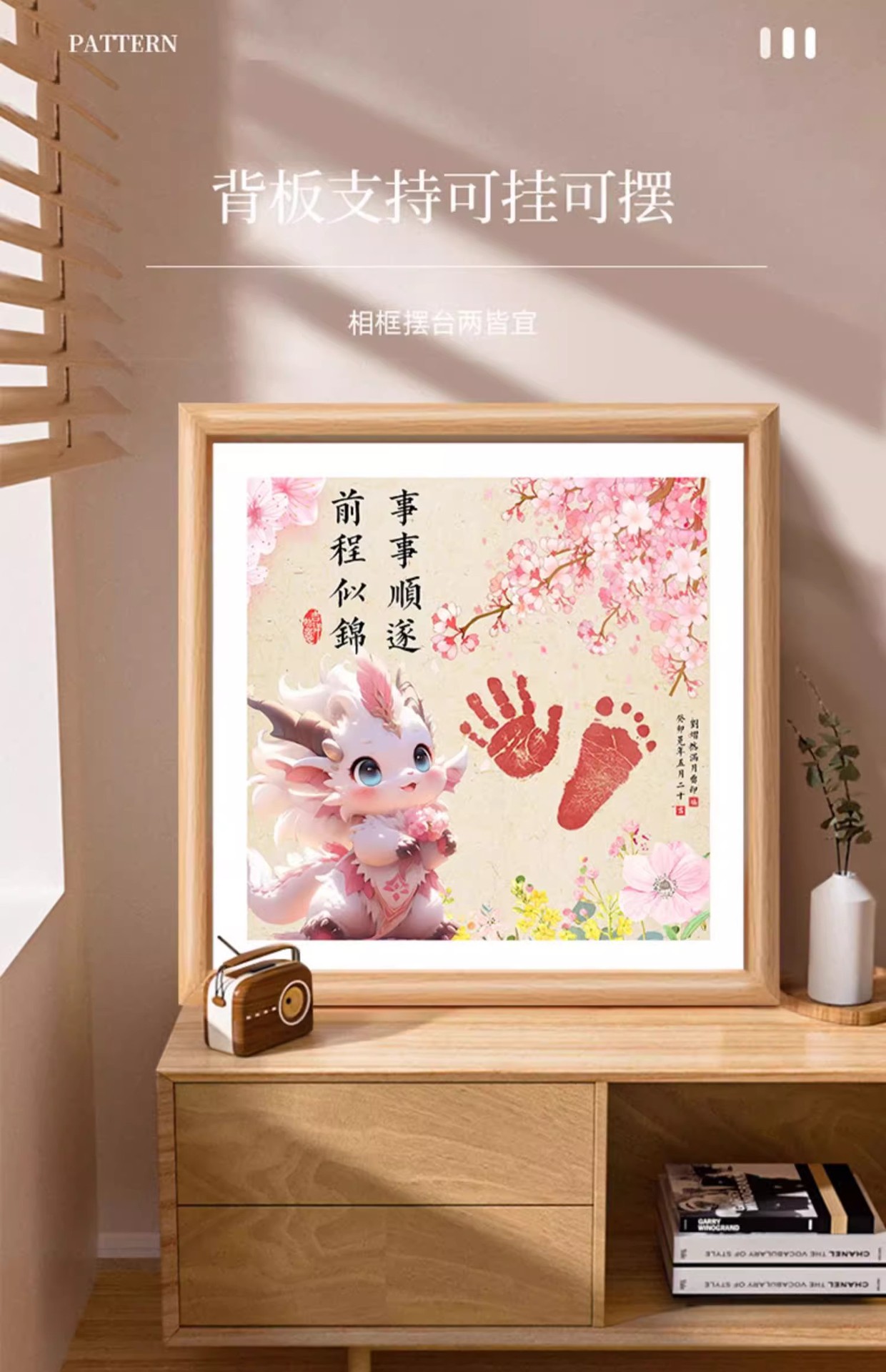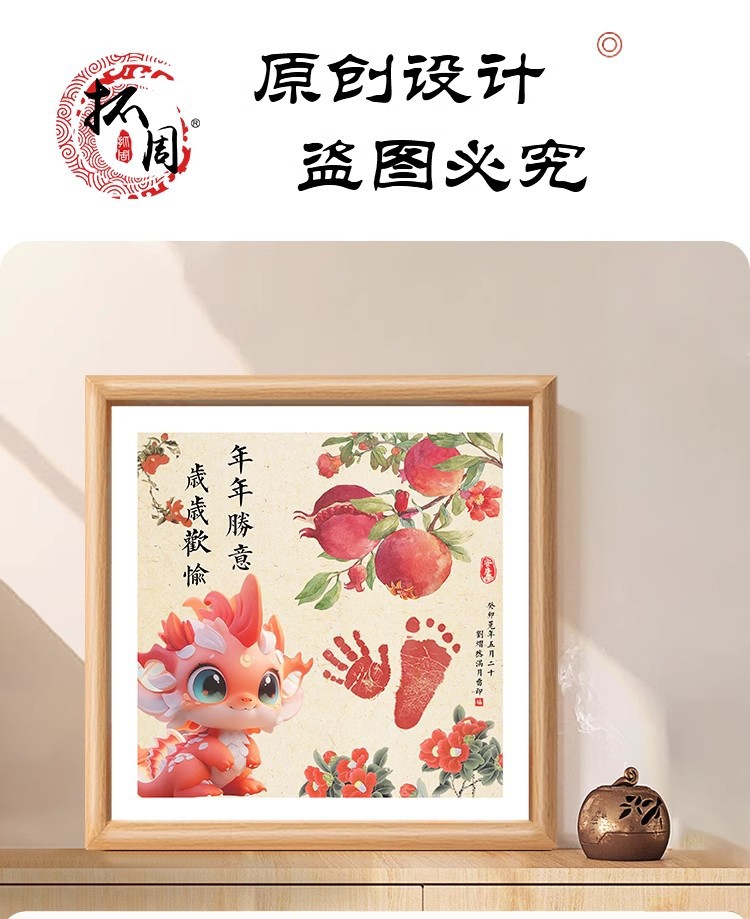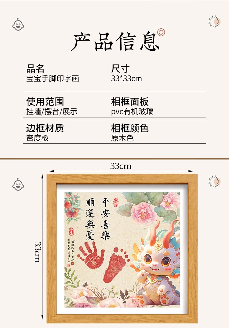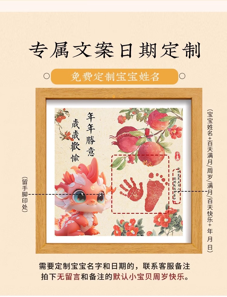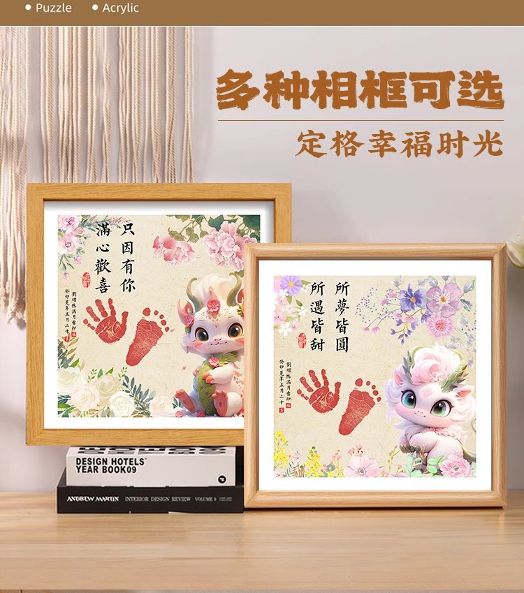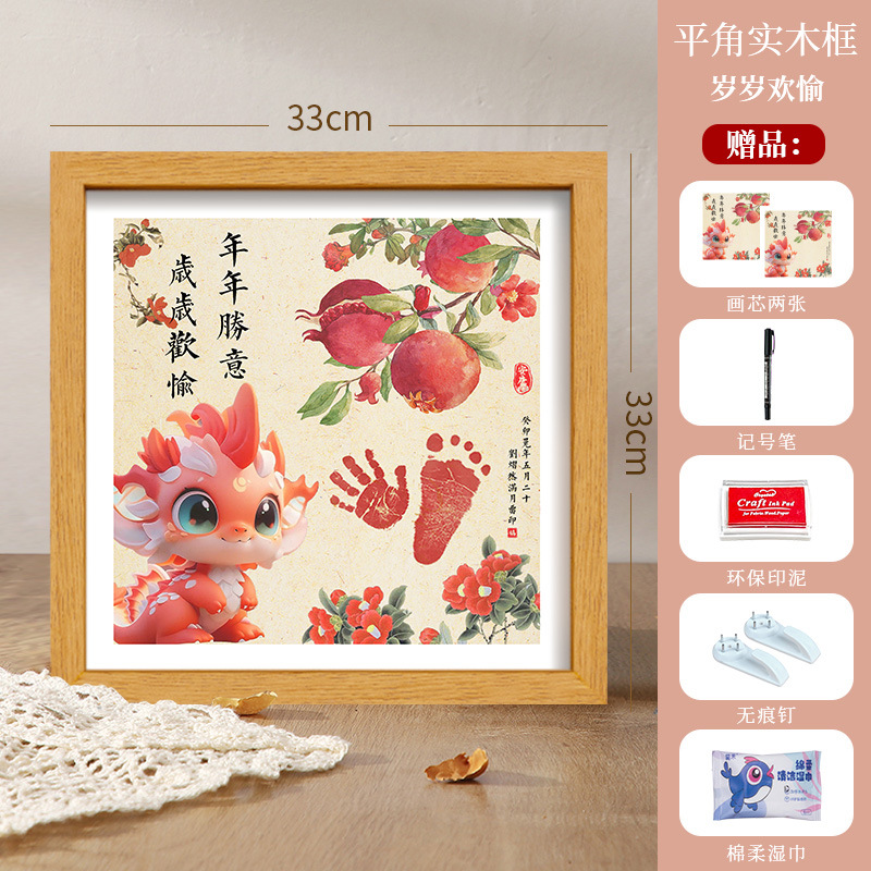 드래곤 베이비 보름달 백일 발자국 기념 사진 프레임 핑 행복한 발자국 출생 장식품 도매스토어 가기