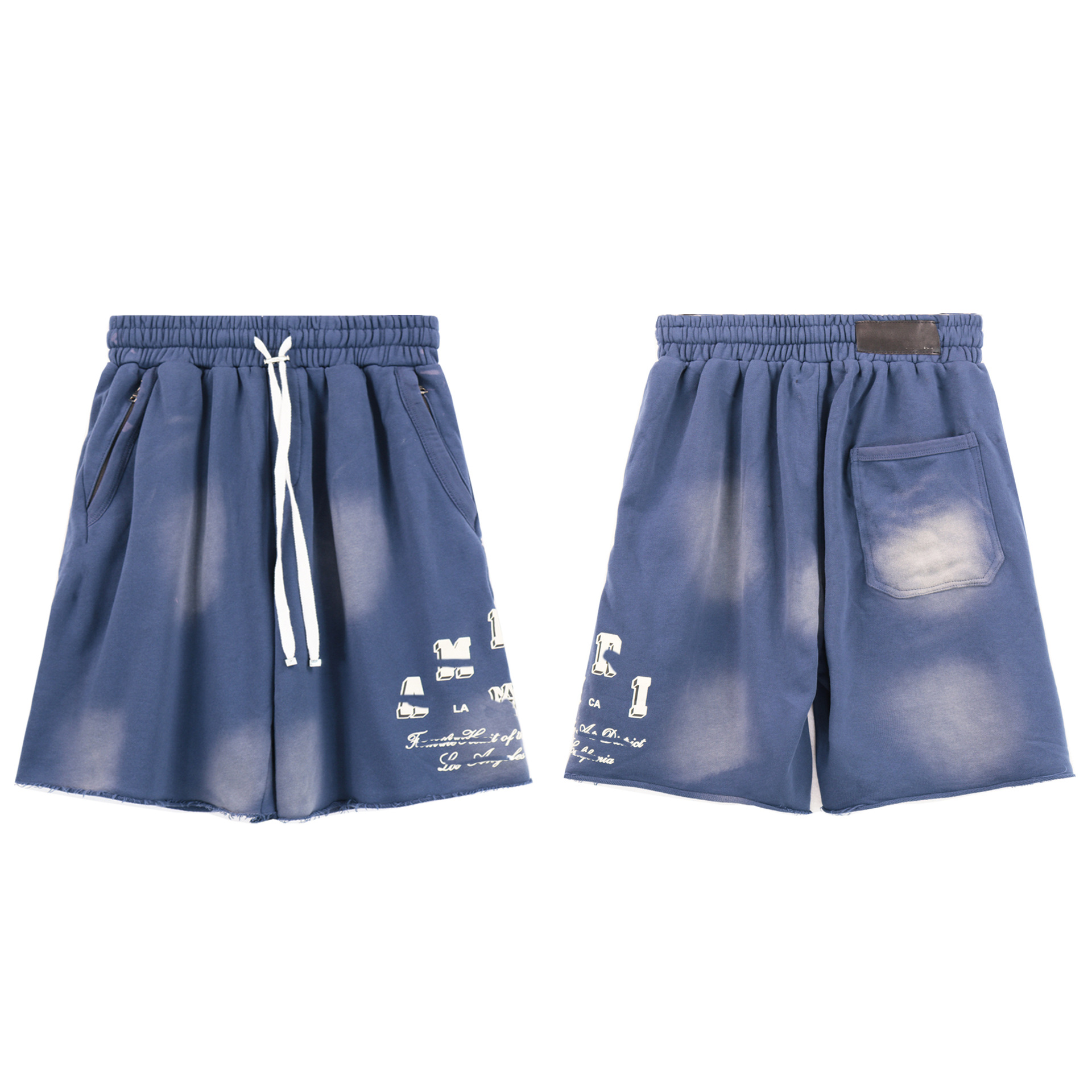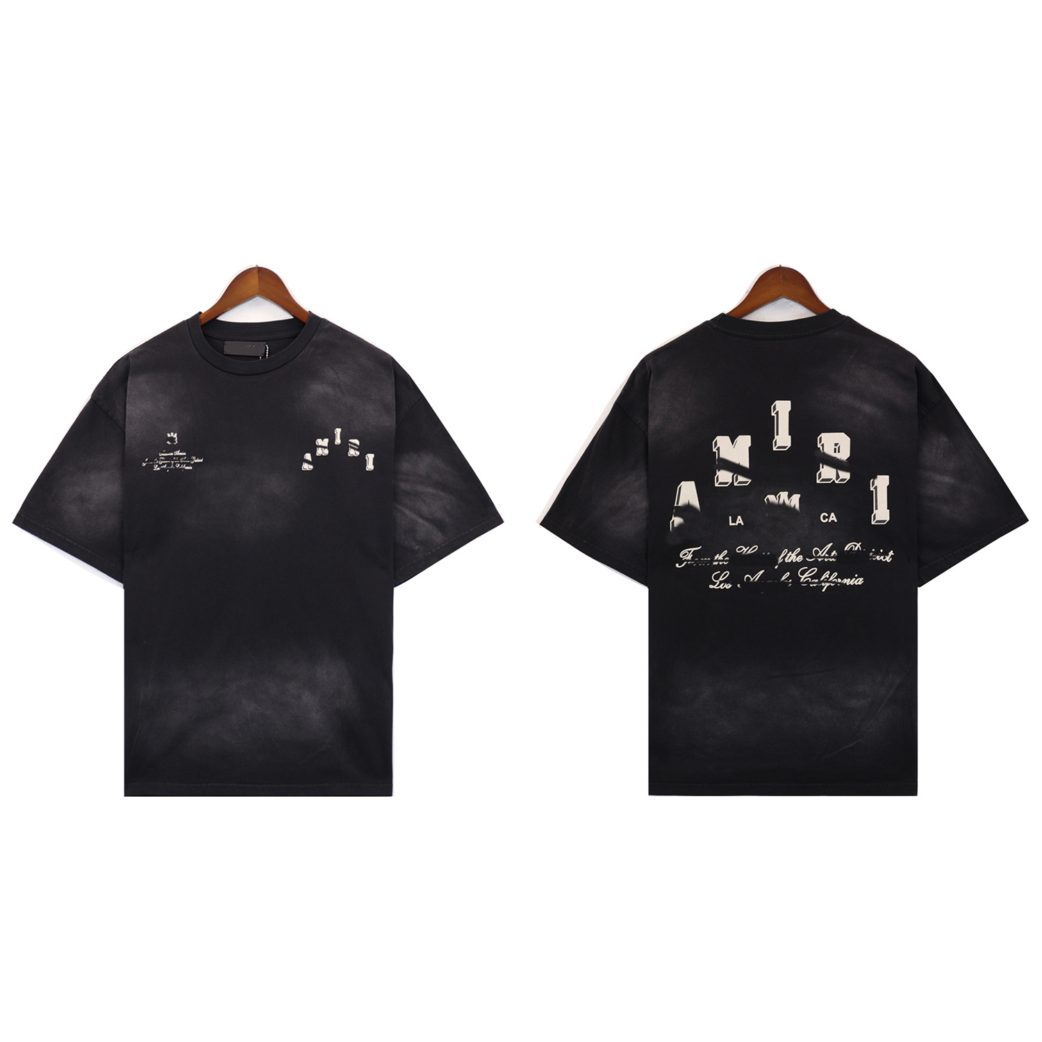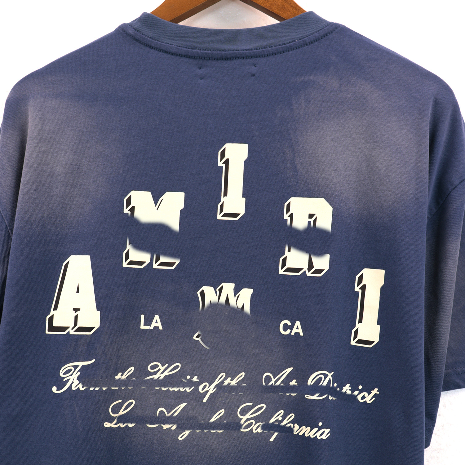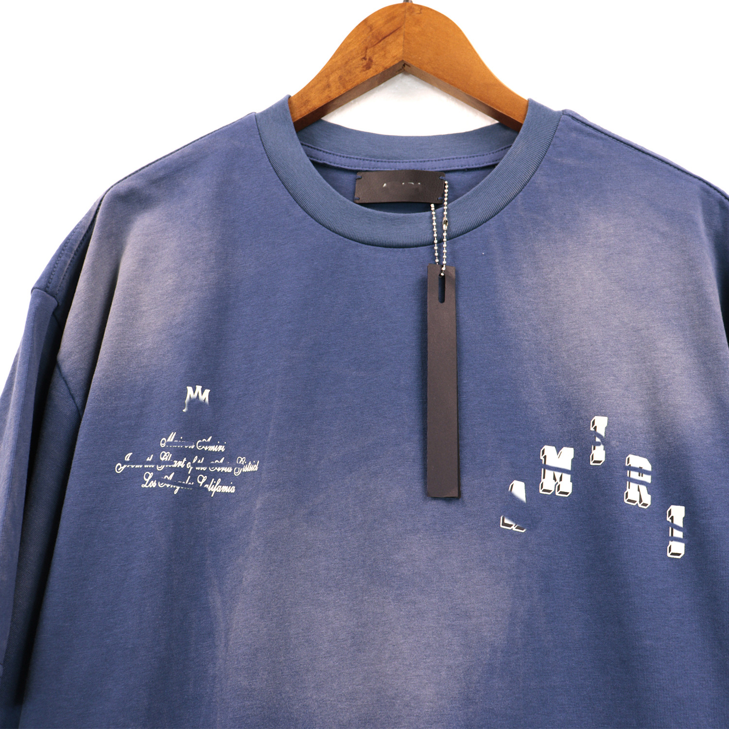 워시 워터 빈티지 티셔츠 세트 아미리 프린트 남성용 느슨한 통기성 캐주얼 반팔 바지 여름 스포츠 세트스토어 가기
