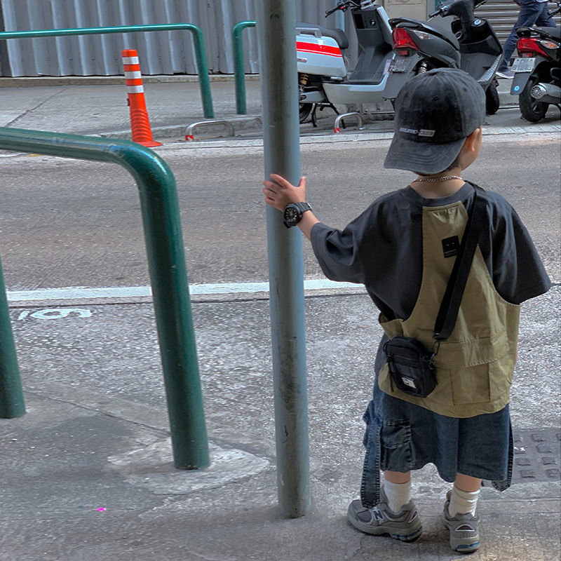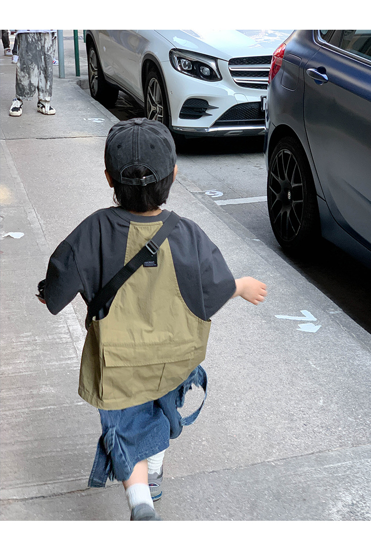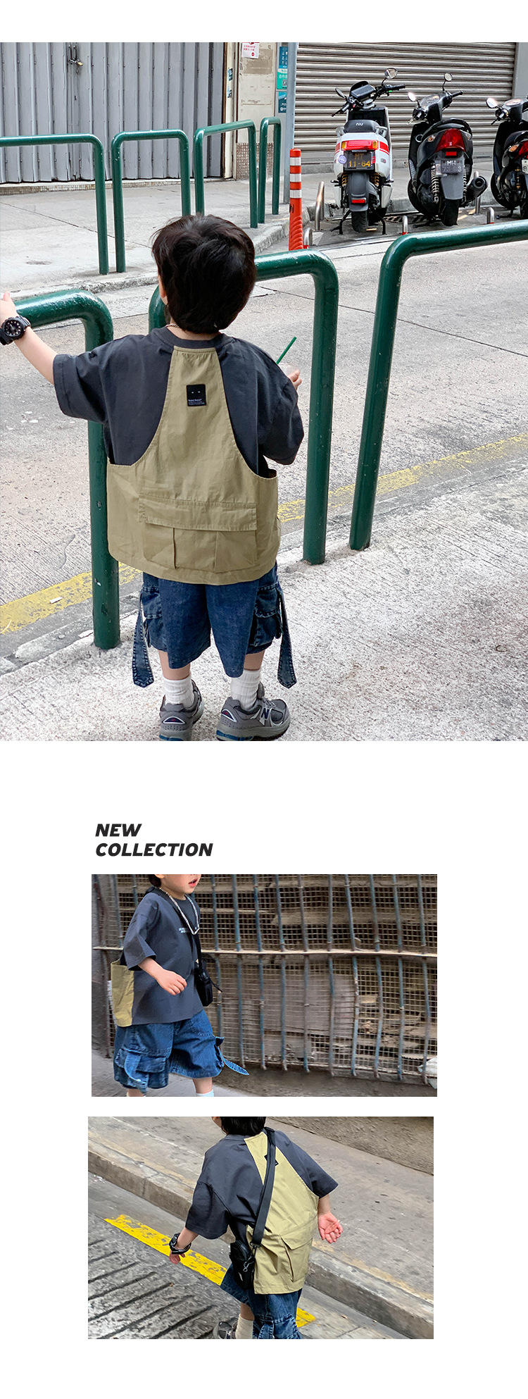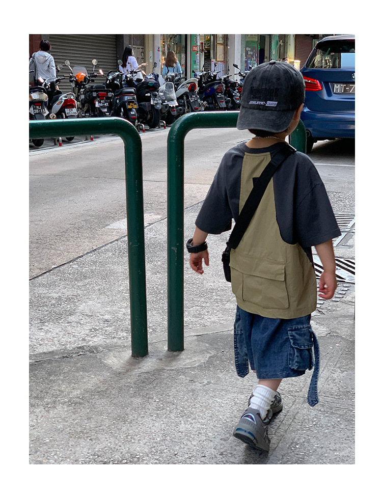 소년 반팔 가짜 투피스 2024 여름 새로운 어린이 한국 스타일 느슨한 캐주얼 티셔츠 중소 어린이를위한 잘 생긴 셔츠스토어 가기
