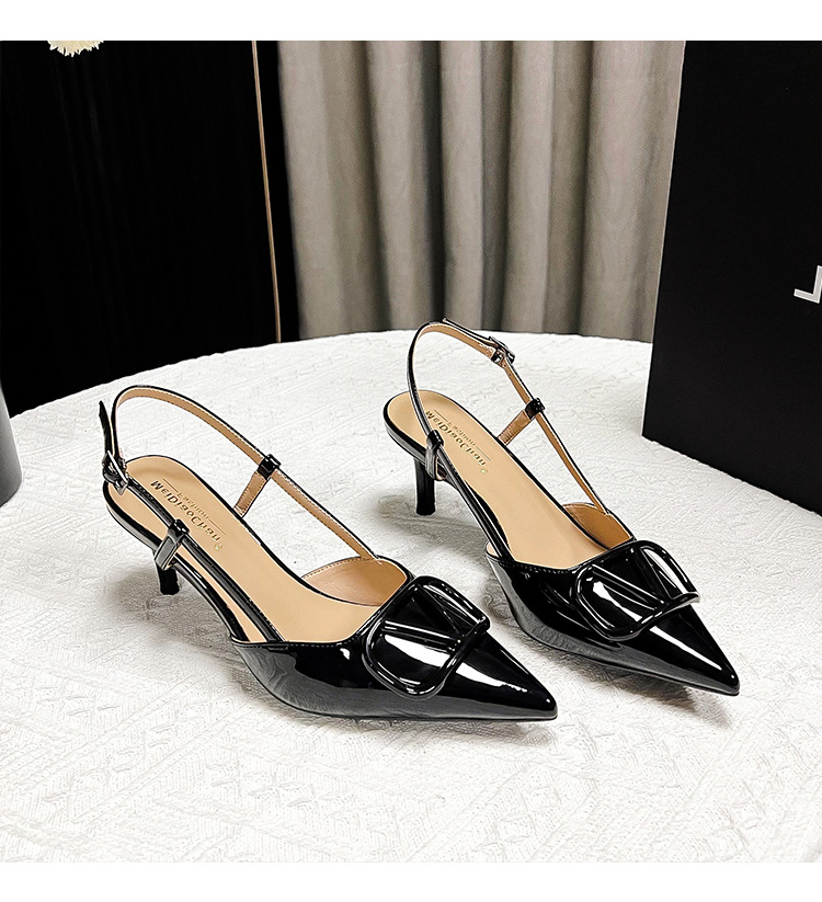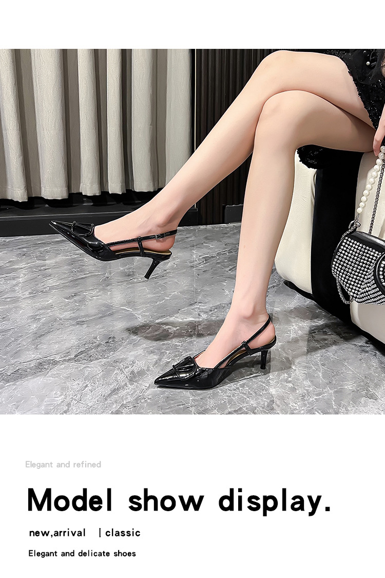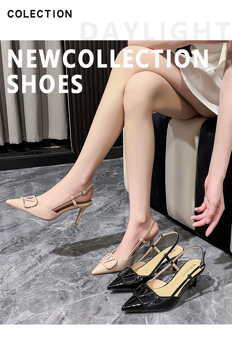 클래식 Huajia V 버클 포인티드 토 백 스트랩 버클 샌들, 섹시하고 우아한 남성용 슬림 하이힐, 천연 양가죽스토어 가기
