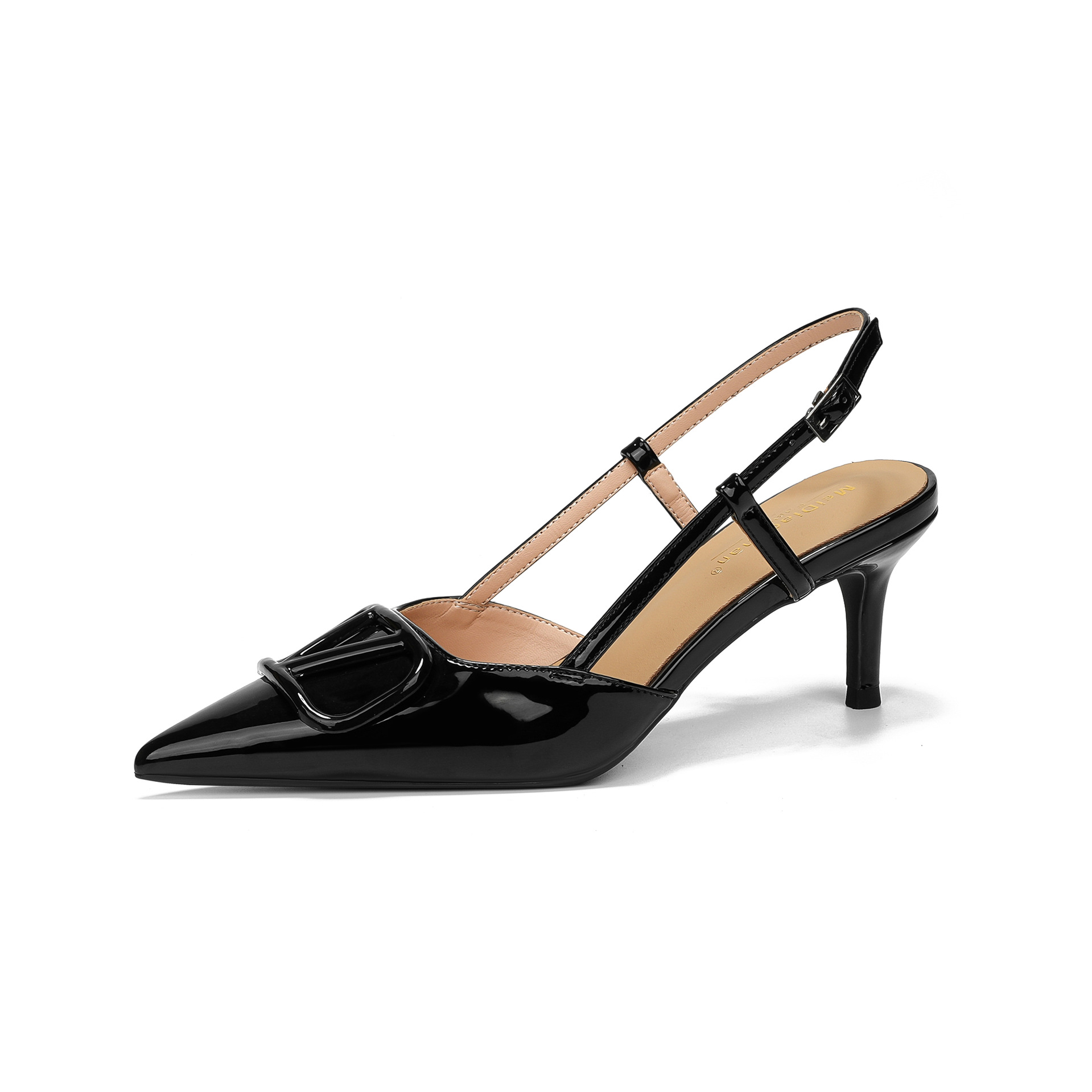 클래식 Huajia V 버클 포인티드 토 백 스트랩 버클 샌들, 섹시하고 우아한 남성용 슬림 하이힐, 천연 양가죽
