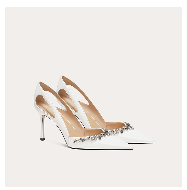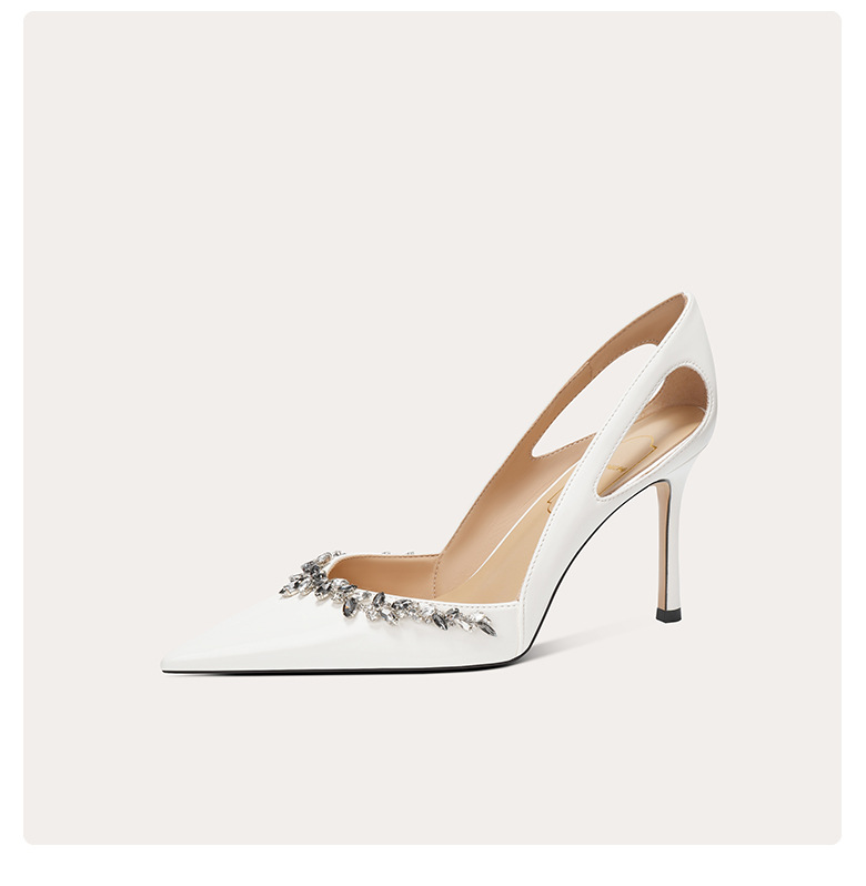 708-C61 할로우 여름 포인팅 디자인 센스 싱글 신발 양가죽 우아한 매일 연회 여성 신발 밝은 다이아몬드 하이힐
