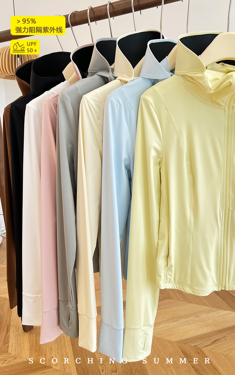 原纱型UPF50+新款透气防晒衣女夏季黑胶连帽薄外套防紫外线防晒服