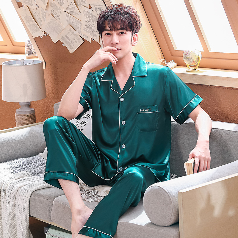 새로운 실크 커플 잠옷 남자와 여자의 긴 소매 실크 세트 칼라 잠옷 세트 공장 도매스토어 가기