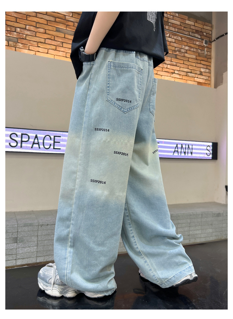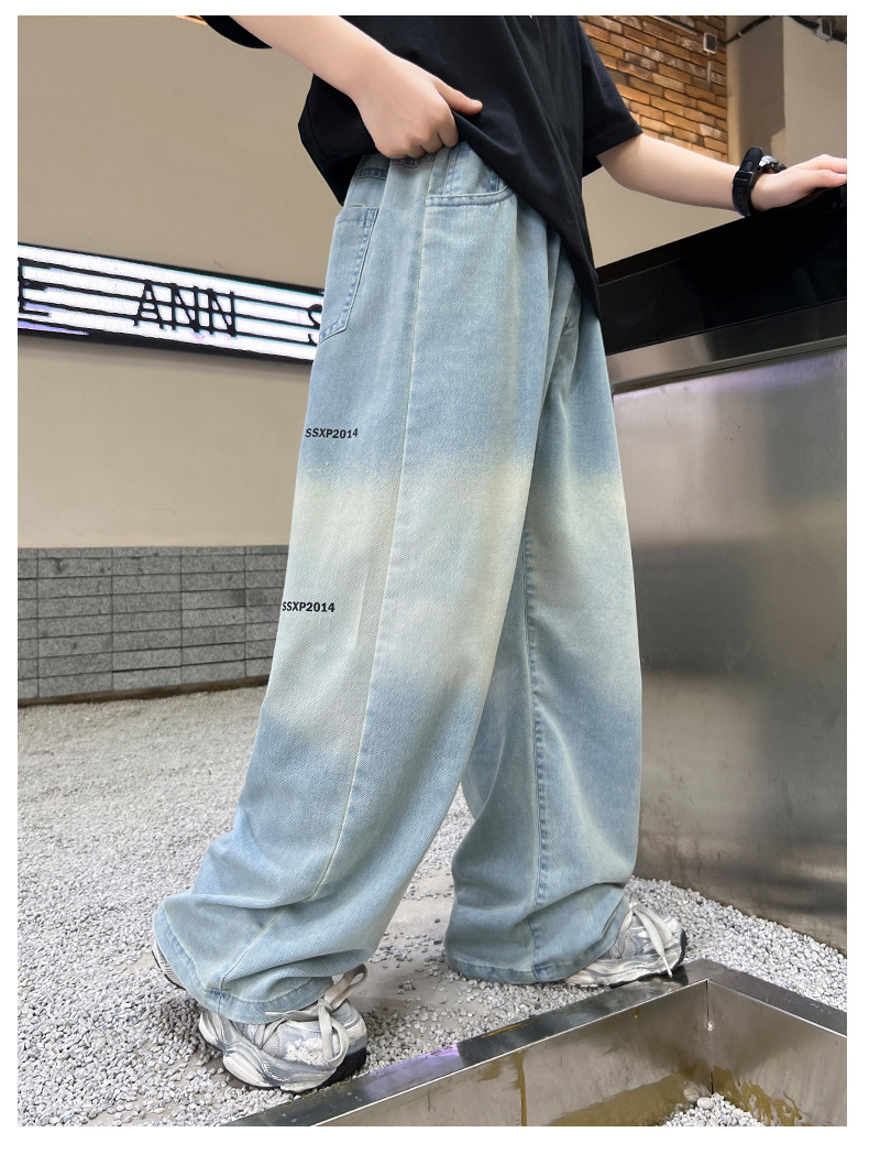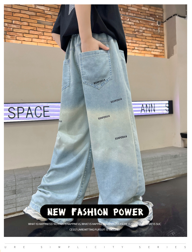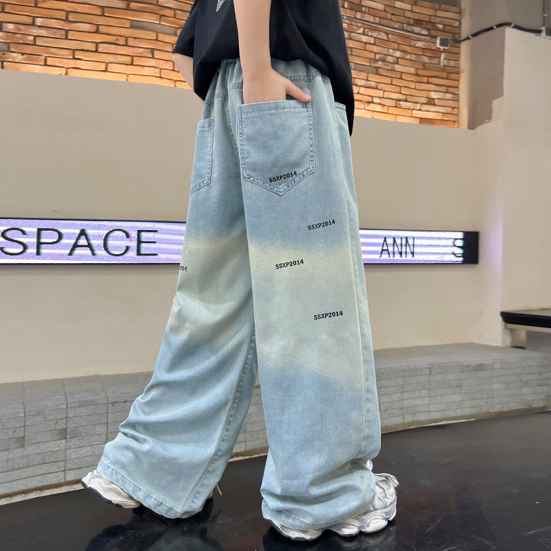 어린이 텐셀 모기 방지 바지 여름 새로운 2024 중형 및 대형 어린이 착용 여름 서양식 넓은 다리 바지 소년 긴 바지 얇은스토어 가기