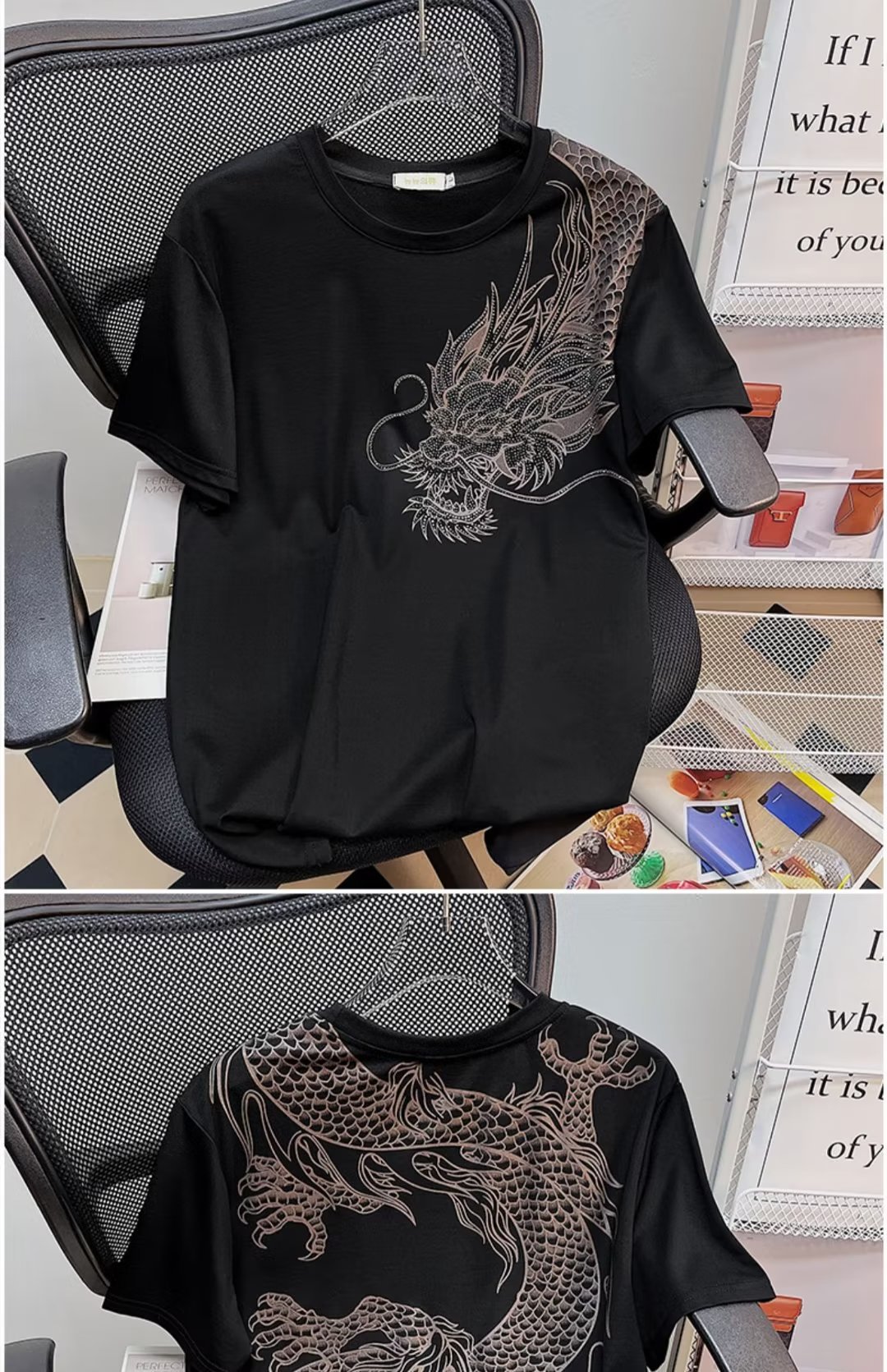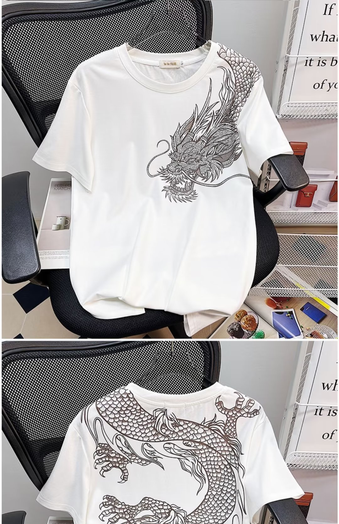 1005-2-T2010-P45 여름 홍콩 스타일 남자 커플 반팔 티셔츠 바느질 캐주얼 루즈 올 매치 하프 슬리브스토어 가기