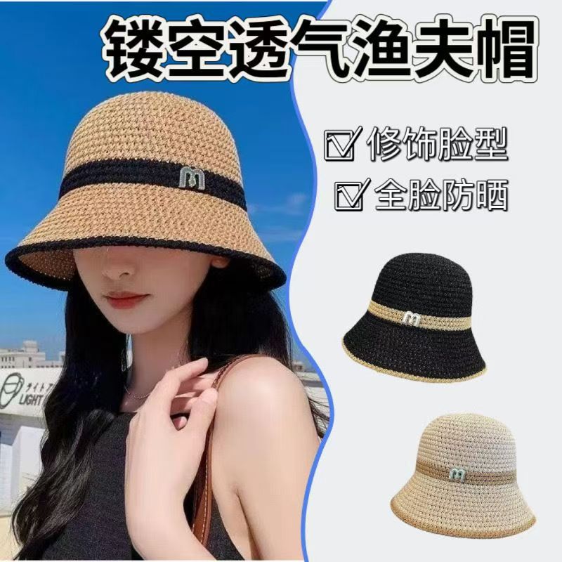 모자 여성의 여름 선 스크린 밀짚 모자 중공 패션 쿨 한국 스타일 트렌디 올매치 태양 모자 여행 어부 모자스토어 가기