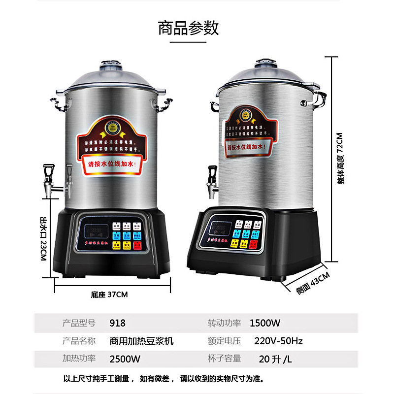상업용 대두 우유 기계 완전 자동 난방 대용량 12/20 리터 전류 연삭 필터-무료 다기능 벽 파괴 기계
