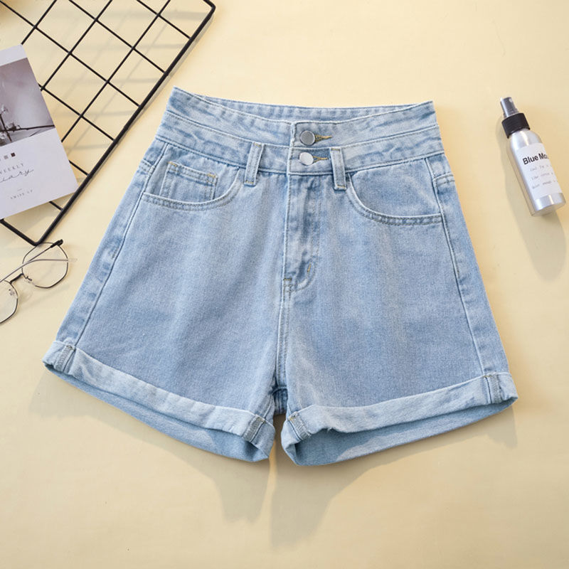 2024 Curled 데님 반바지 여성의 큰 크기 느슨한 넓은 다리 통통녀 밝은 색 높은 허리 슬리밍 디자인 핫 바지스토어 가기