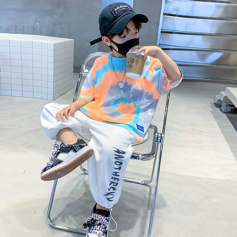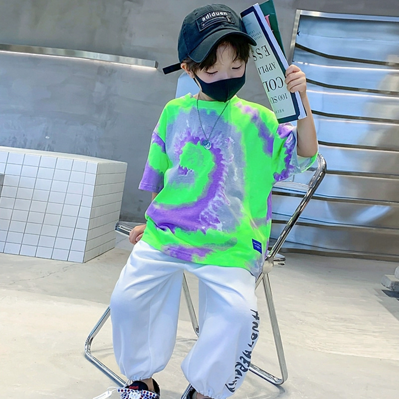 2024 여름 어린이 느슨한 패션 짧은 소매 멋진 컬러 낙서 힙합 스타일 짧은 소매 티셔츠 상단 소년 소녀스토어 가기