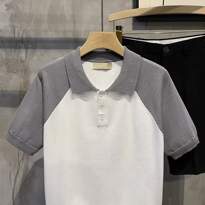여름 유행 맞춤형 콘트라스트 컬러 스티칭 니트 티셔츠 최고 남성 캐주얼 라 마이크로 루즈 폴로 셔츠