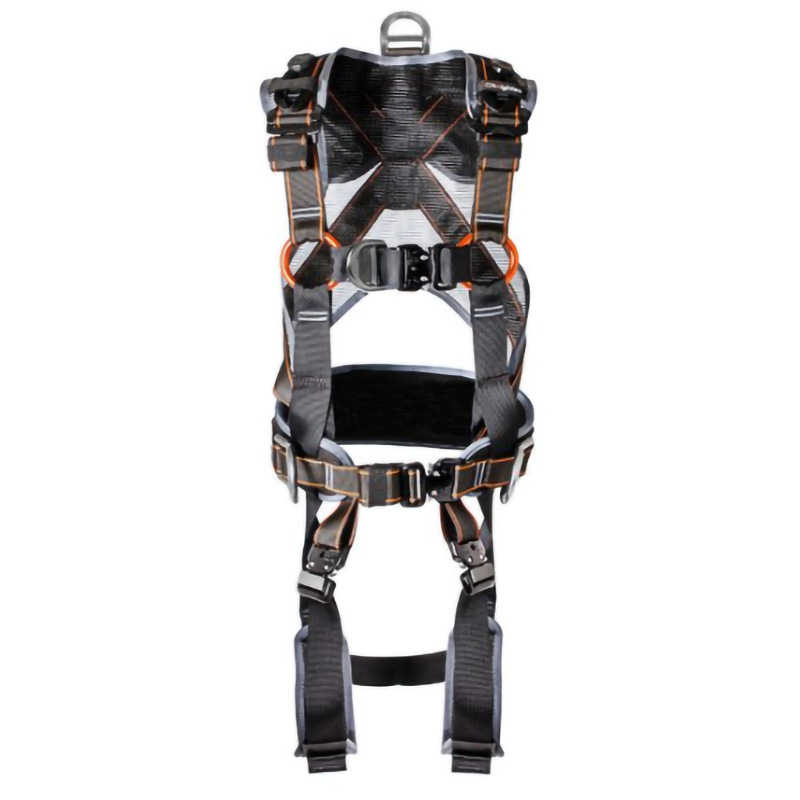 NEW VORTEX风电安全带高背部防坠点、一体化背部支撑设计,肩部、背部、腰部、腿部均配有透气支撑垫。胸部、背部、腰部配有连接点。腰部两侧附有工具挂环,背部、腰部配有防磨结构,配有SafeLock快接系统。最大工作负荷140kg,通过CE EN 361, EN 358认证。重量:1.9 kg