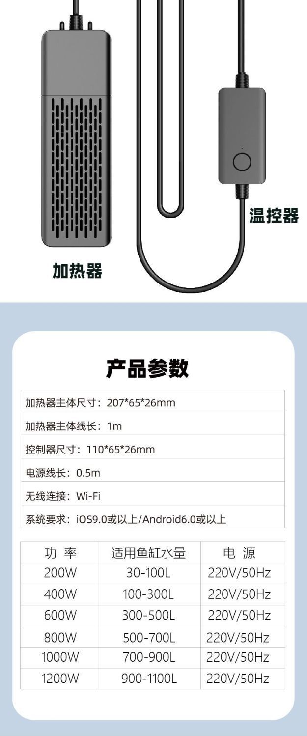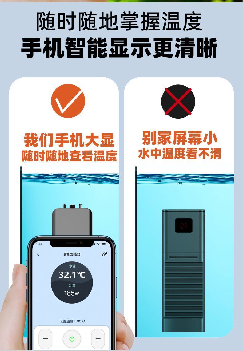 Yut 지능형 주파수 변환 어항 가열봉 자동 일정한 온도 와이파이 원격 제어 타이밍 절전 가열 막대 수족관