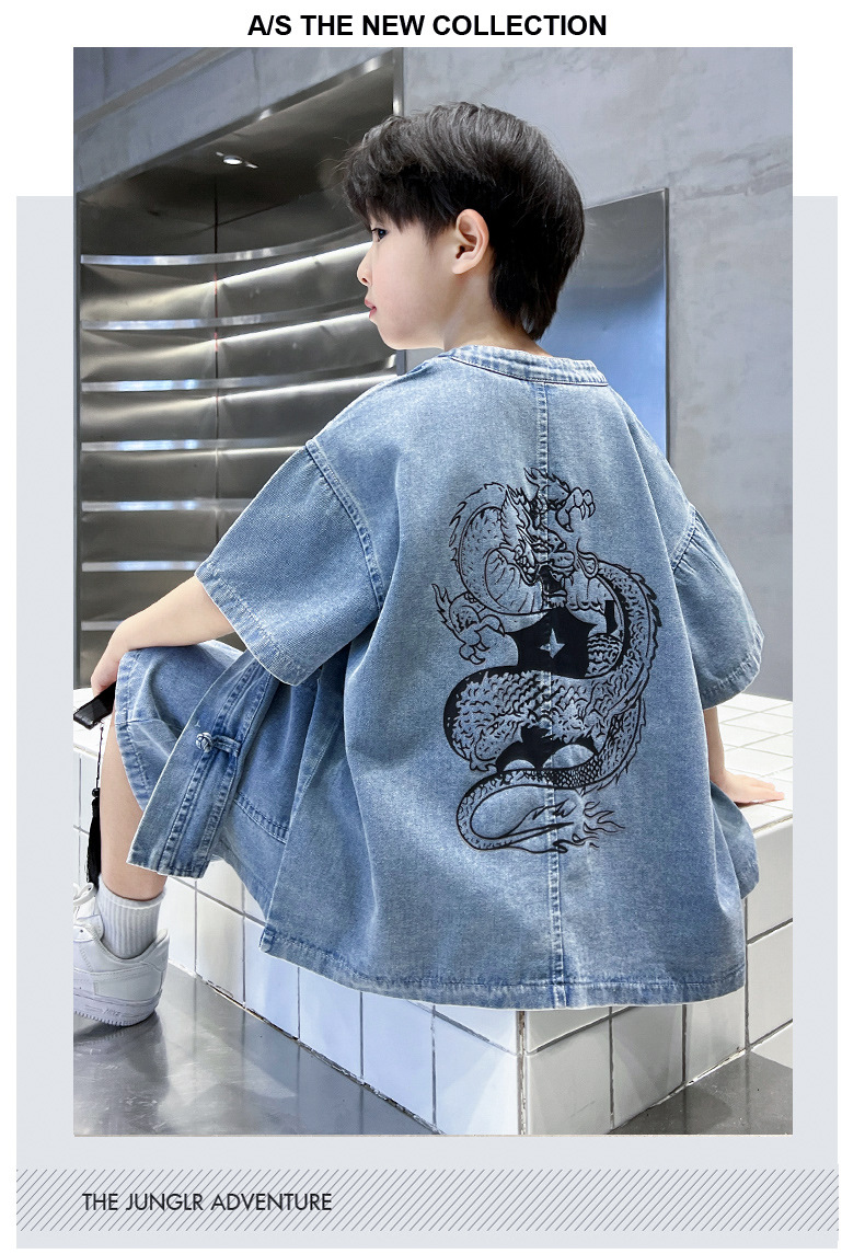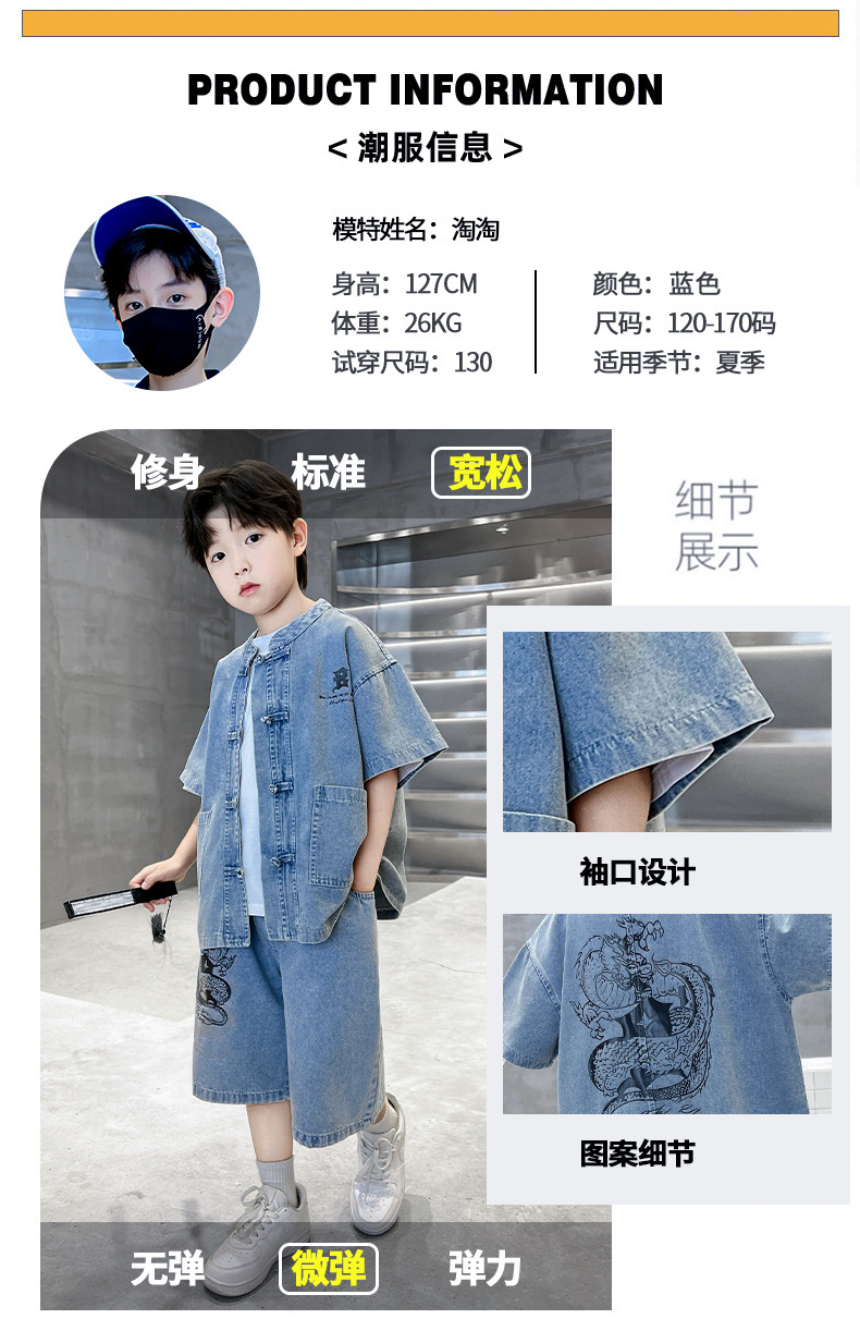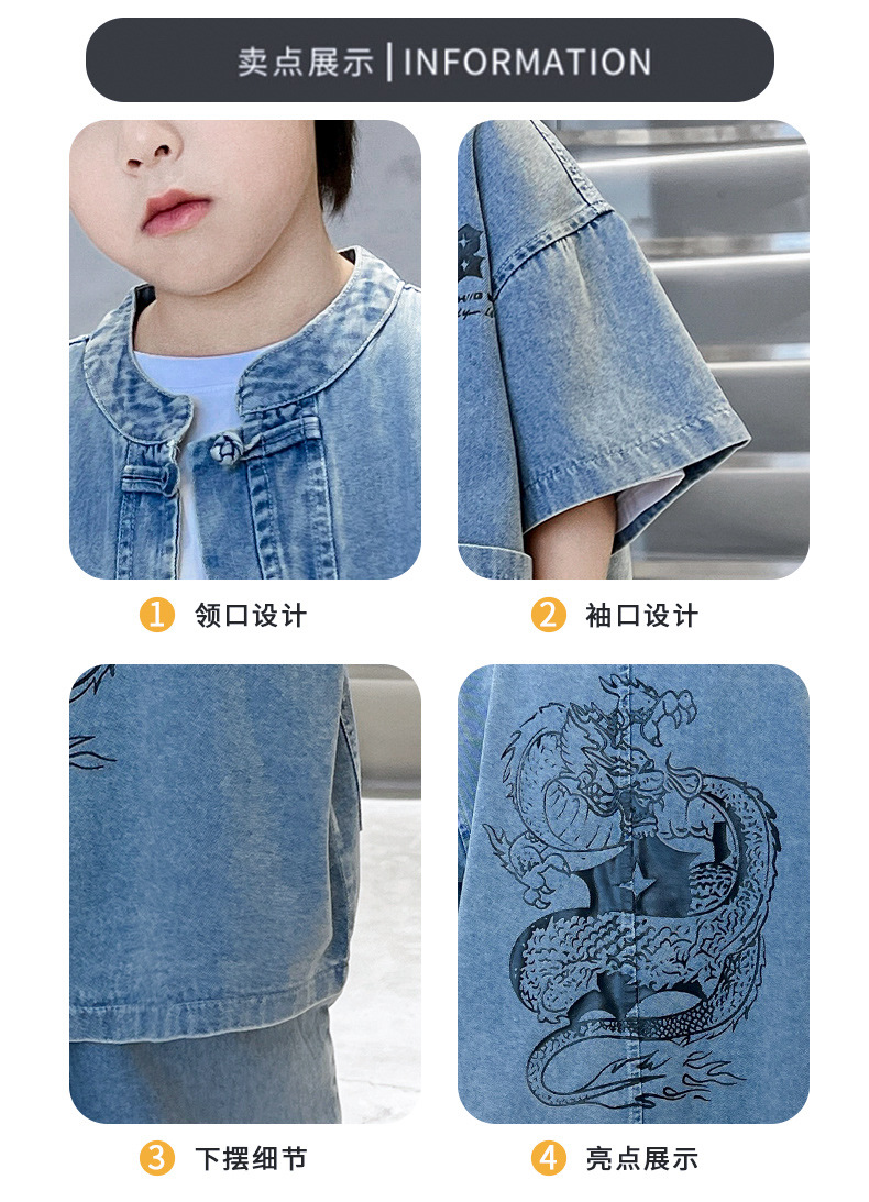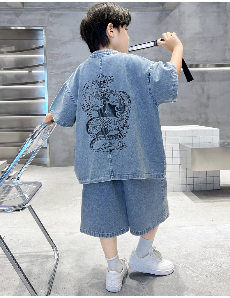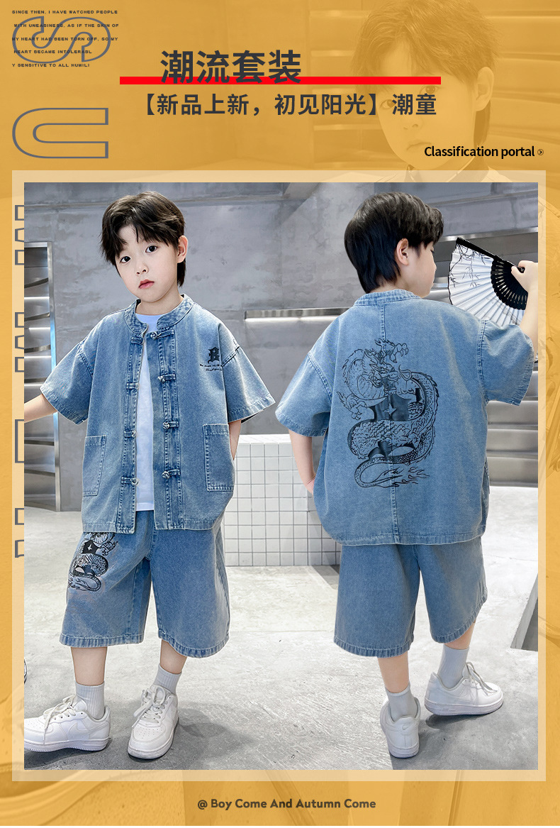 남아 여름복 신상 중국풍 반팔 데님 셔츠 세트 2025 신상 멋스럽고 패셔너블한 얇은 스타일의 투피스 세트스토어 가기