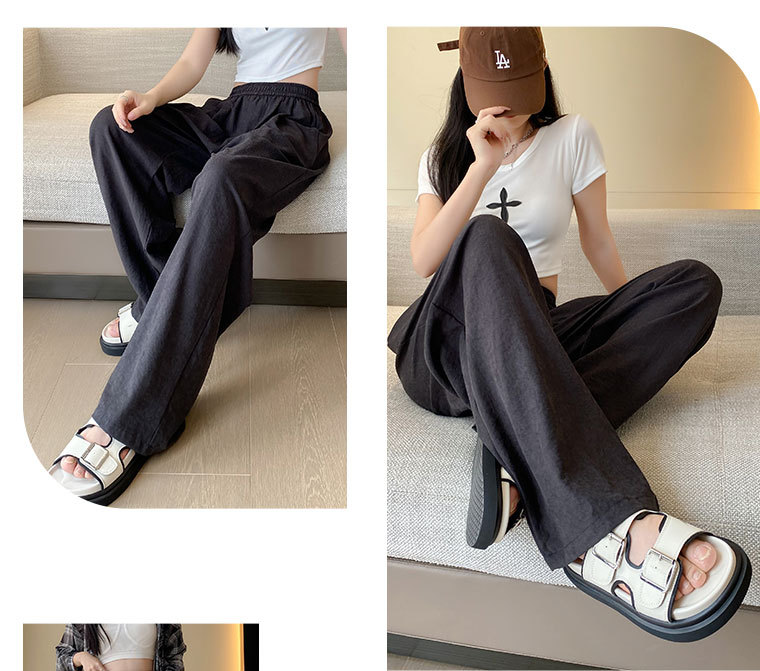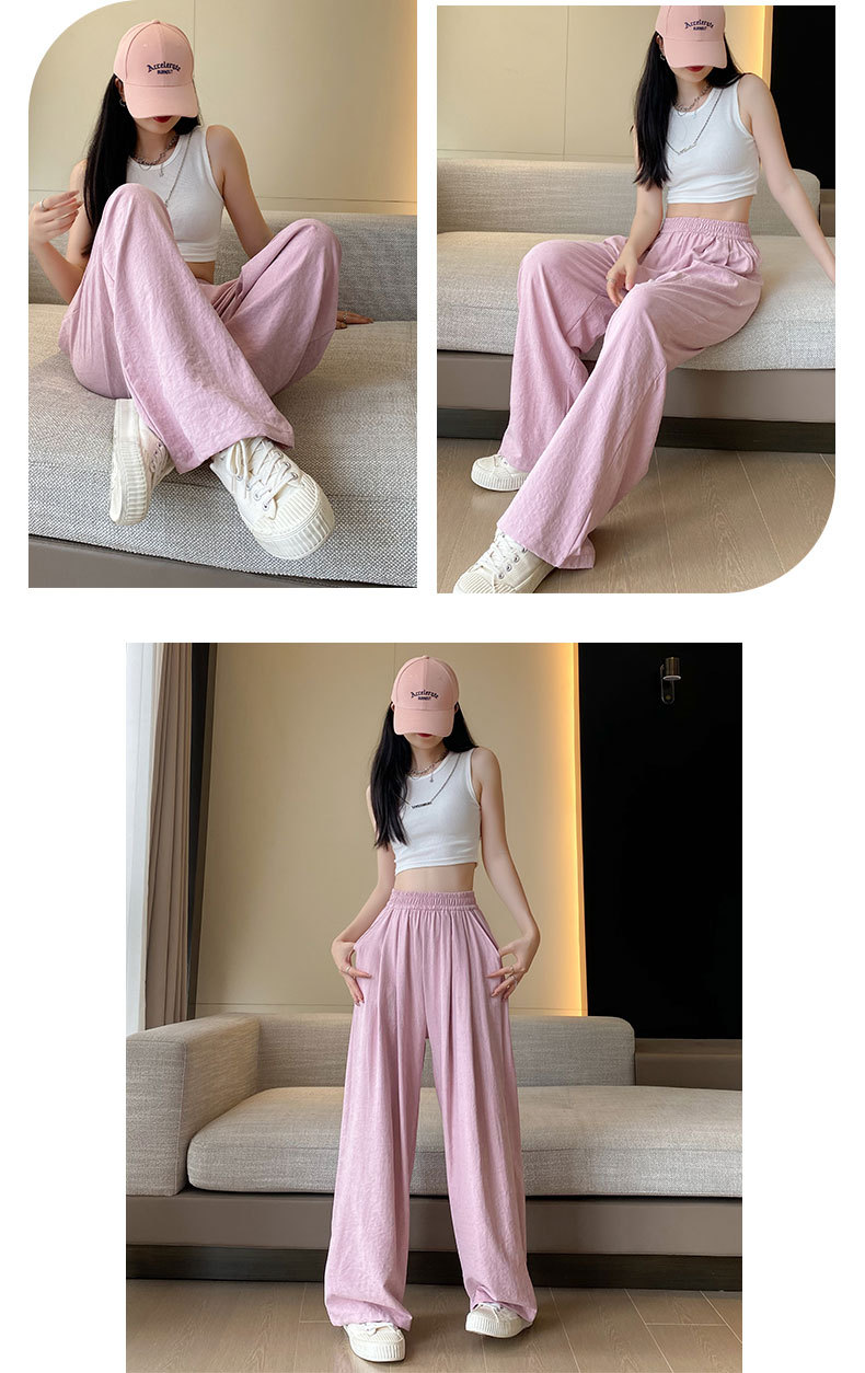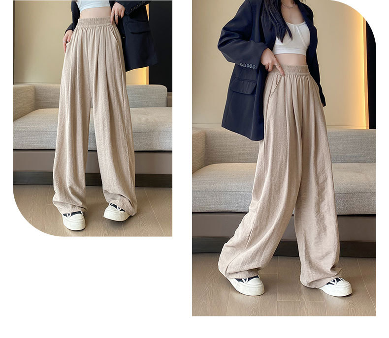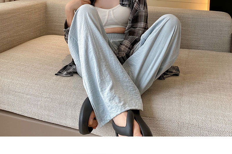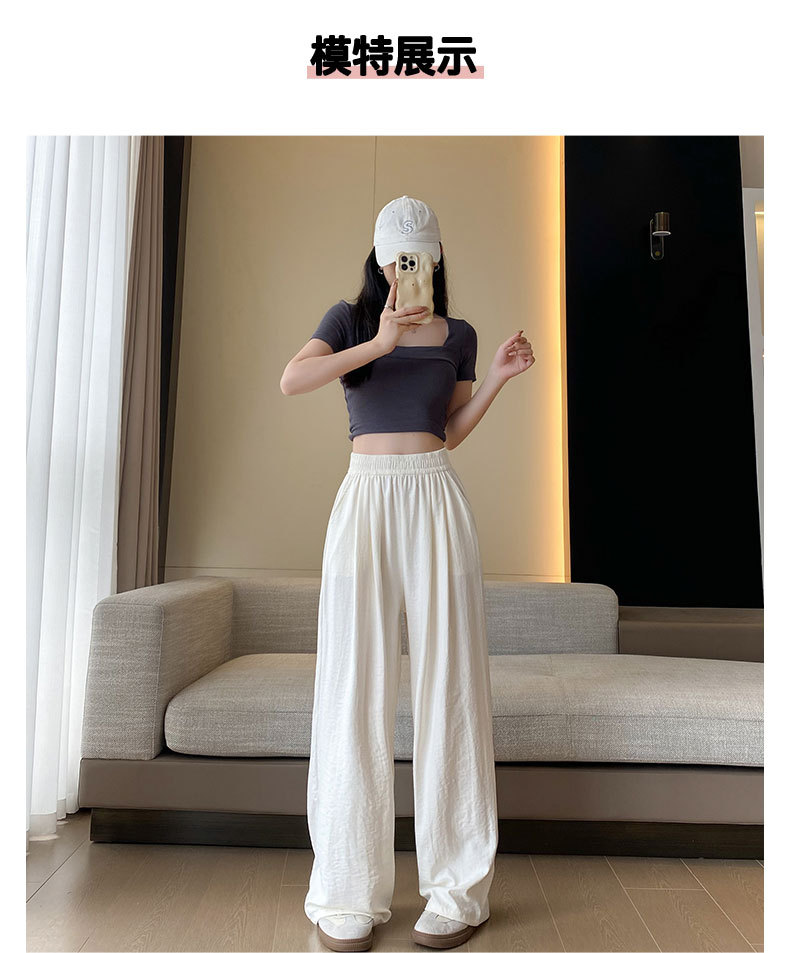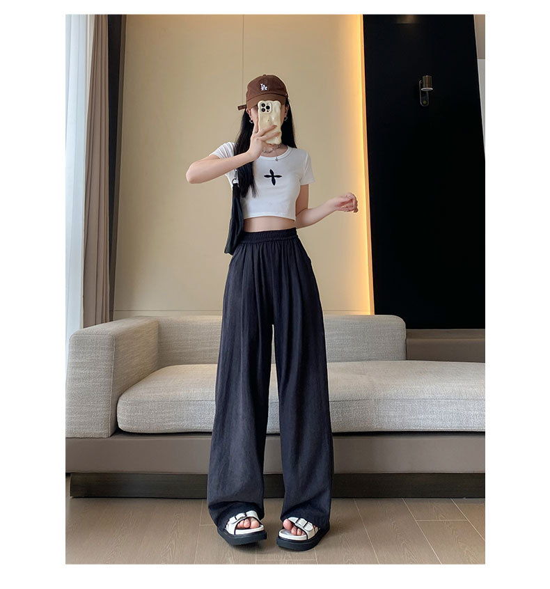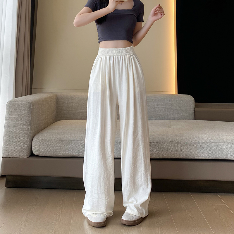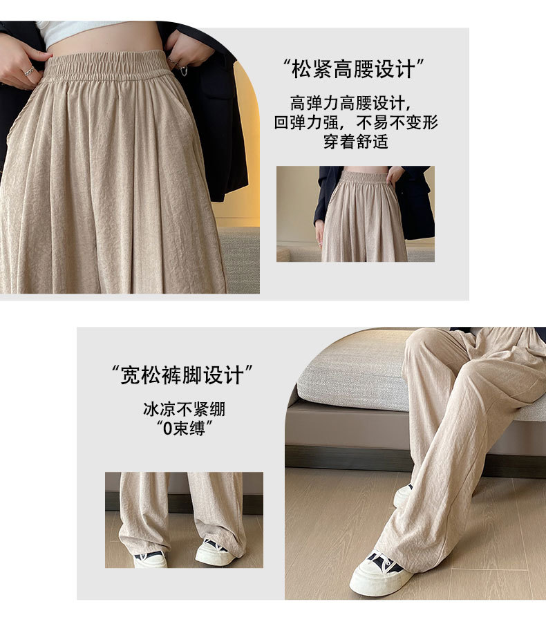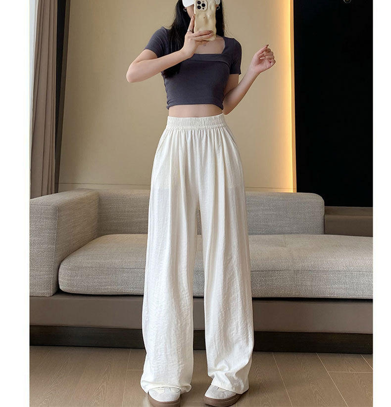 식초 요거트 푸쿠아이 팬츠 여성용 얇은 하이웨이스트 드레이프 아이스 실크 스트레이트 롱 팬츠 아이스크림 색상 레이지 스타일스토어 가기
