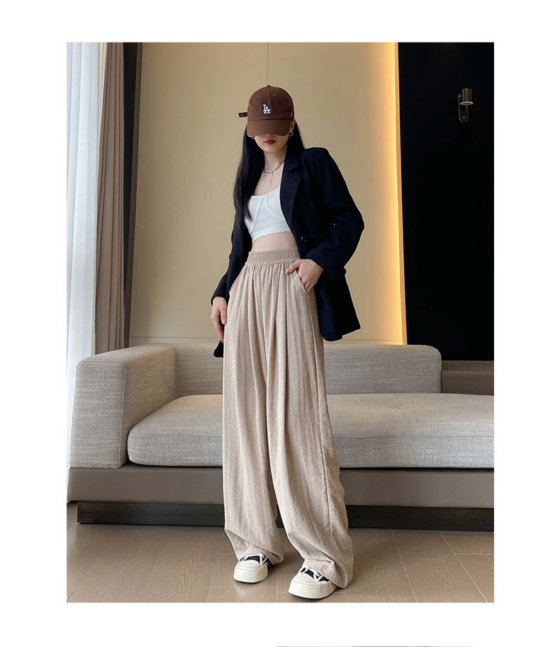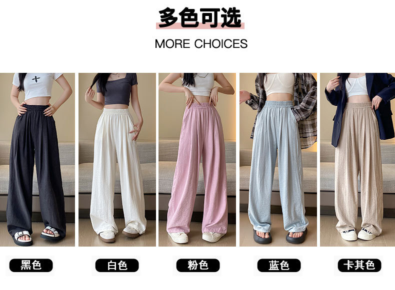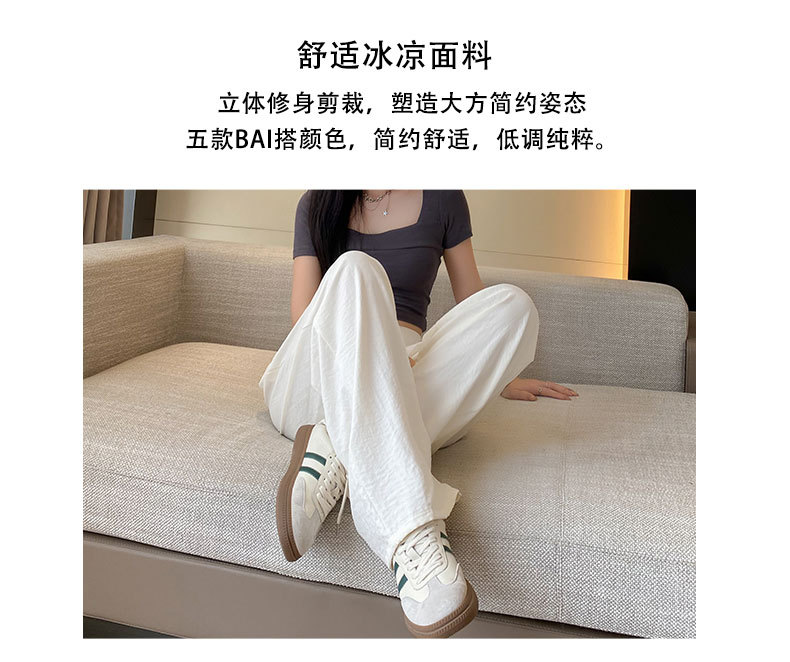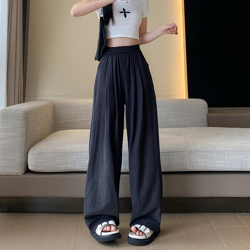 식초 요거트 푸쿠아이 팬츠 여성용 얇은 하이웨이스트 드레이프 아이스 실크 스트레이트 롱 팬츠 아이스크림 색상 레이지 스타일