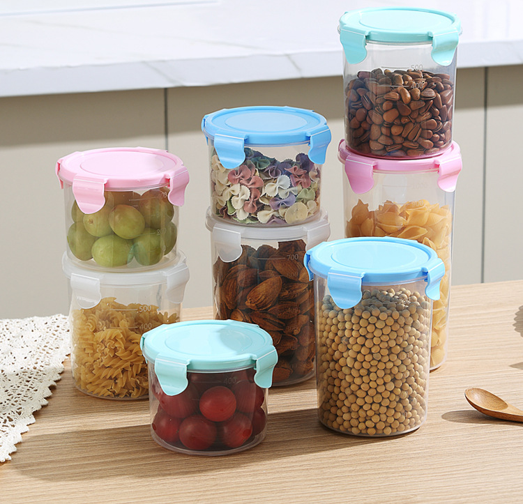 투명한 플라스틱 밀봉 된 항아리 곡물 저장 항아리 주방 냉장고 저장 항아리 식품 저장 상자 저장 항아리