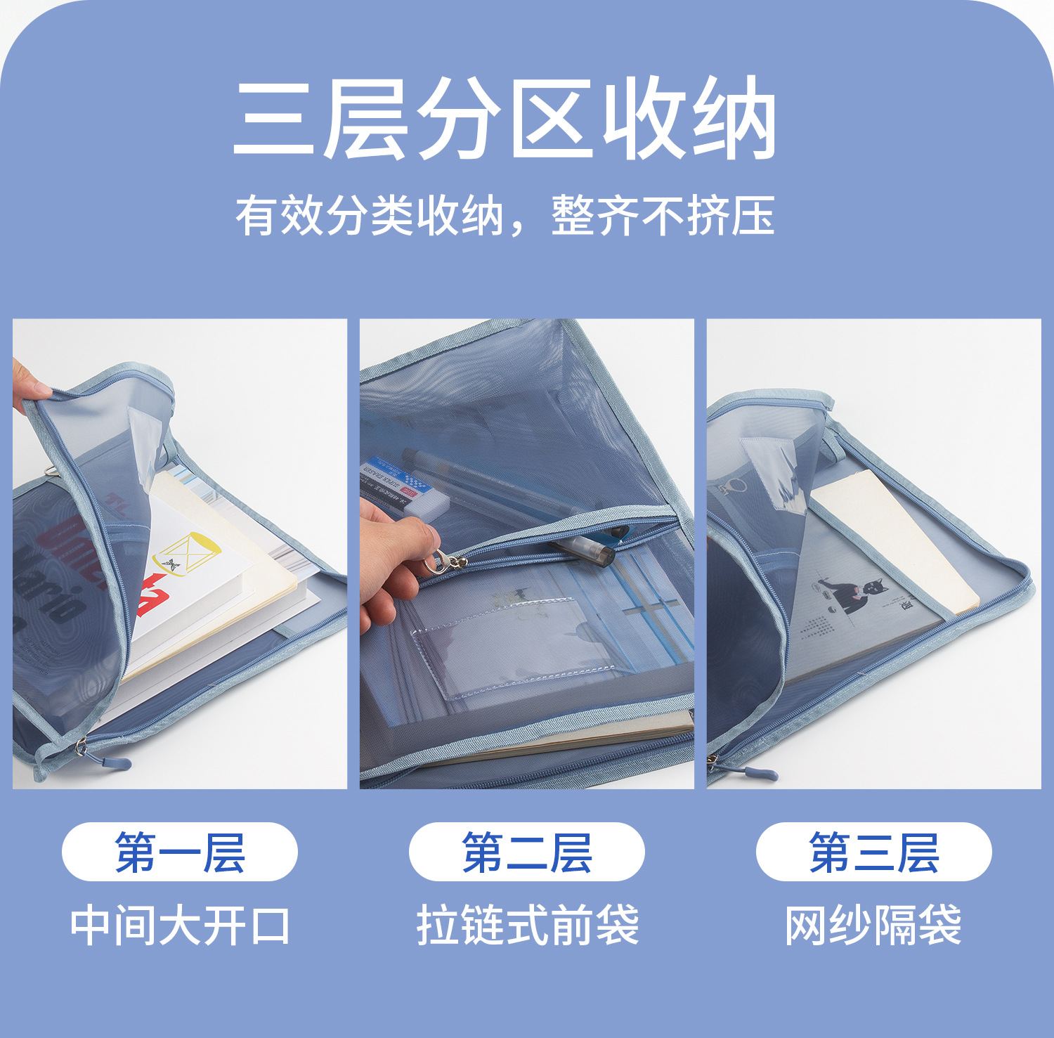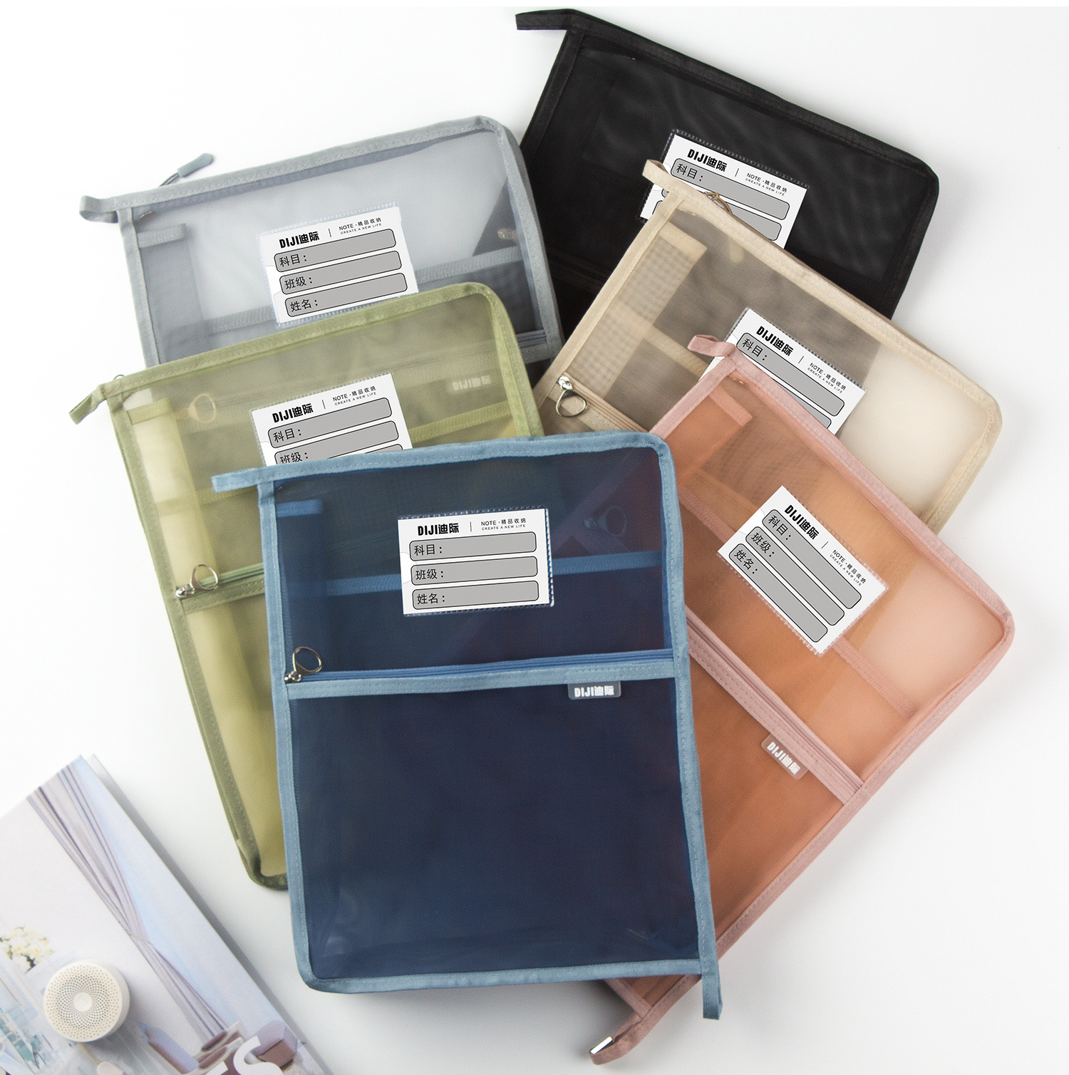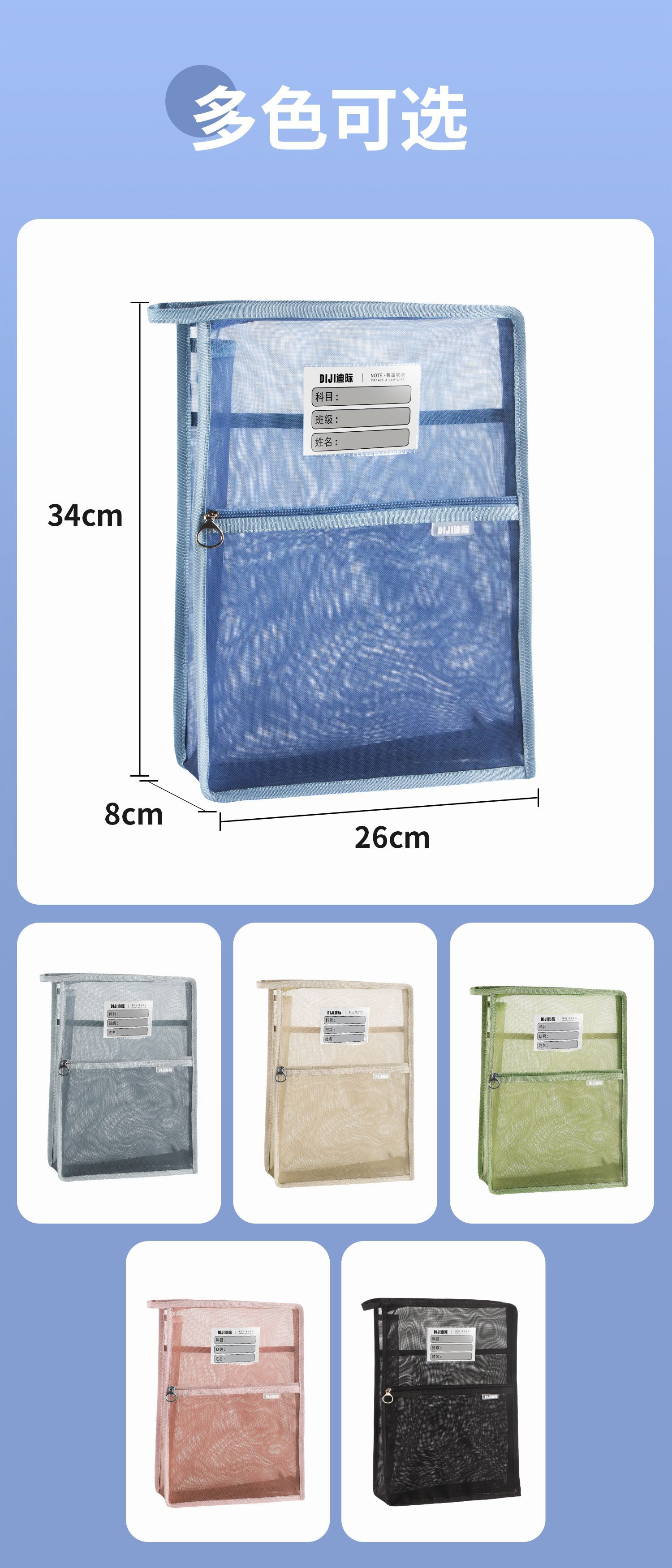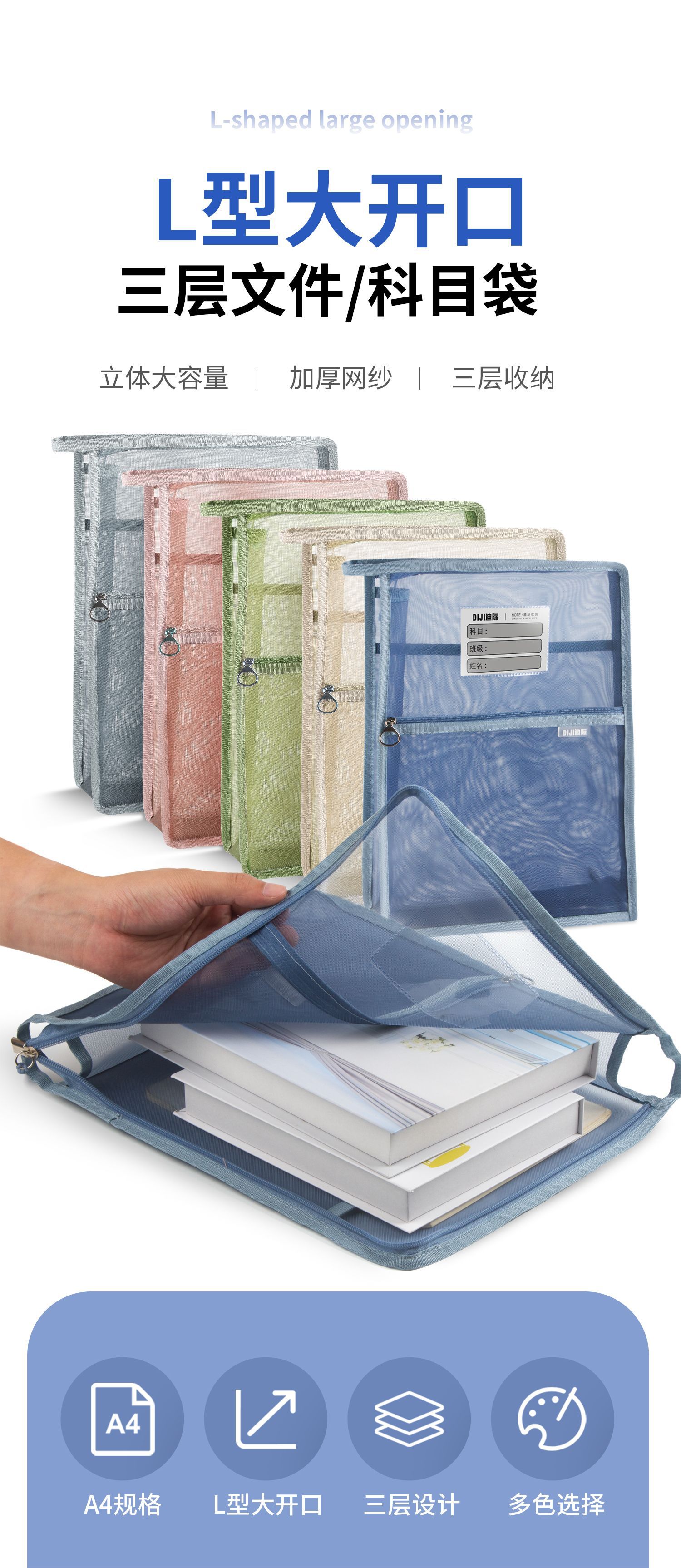 L자형 메쉬 과외 가방, 3겹 나일론 파일 가방, 대형 오픈 과목 가방, 학생 정보 보관 가방, 지퍼 가방