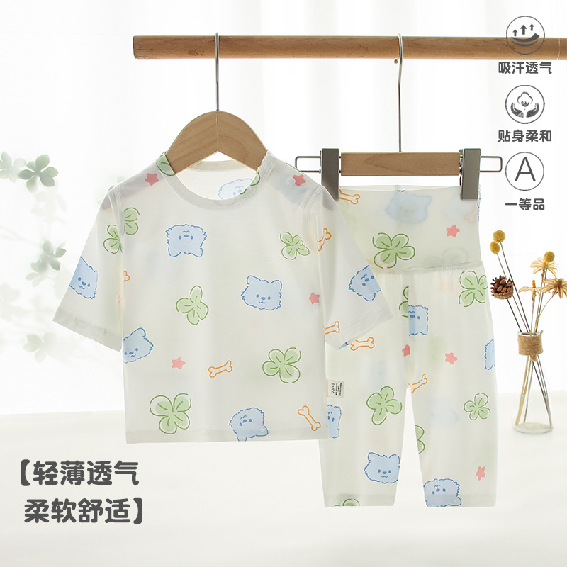 아기 여름 의류 소년 소녀 아기 얇은 세트 어린이 홈 옷 파자마 에어컨 의류 안양 아기 의류
