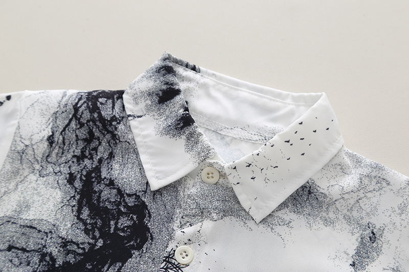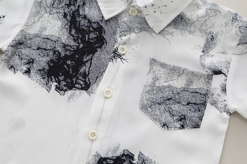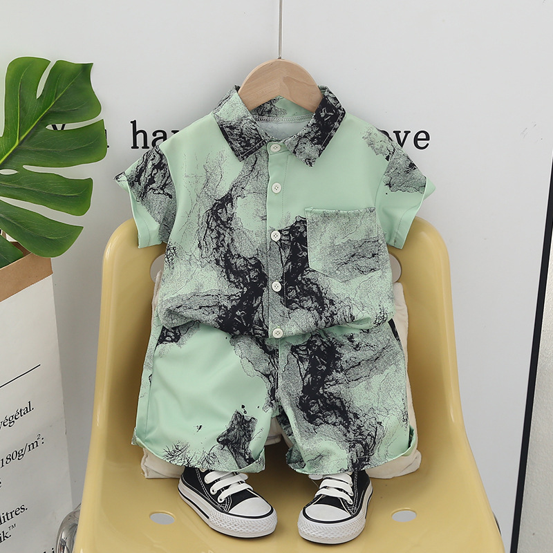 잉크 스타일 소년 여름 셔츠 세트 짧은 소매 반바지 투피스 얇은 여름 패션 어린이 셔츠 서양식스토어 가기