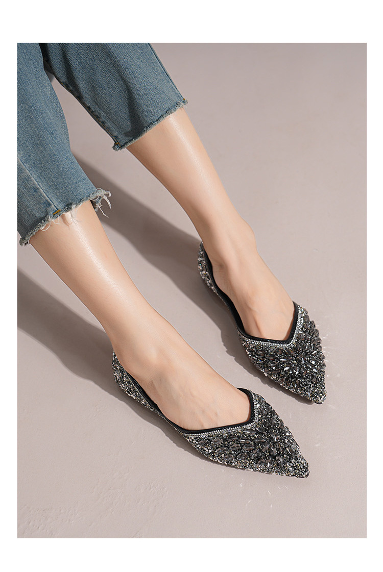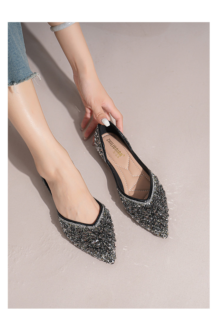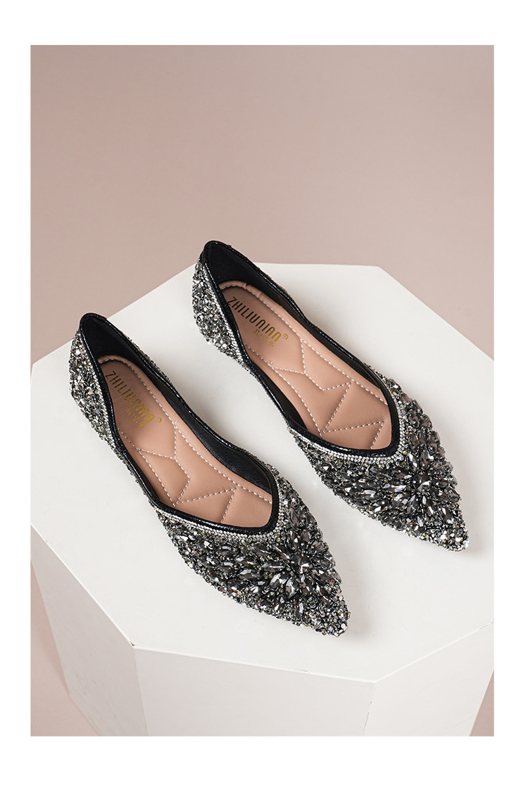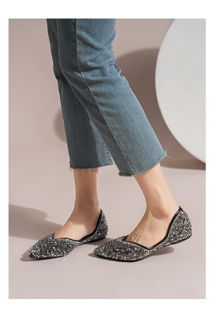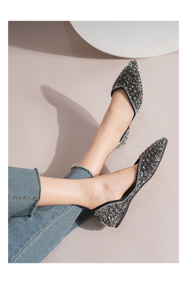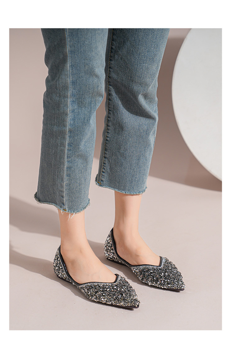 333-9 새로운 라인스톤 싱글 신발 여성 신발 뾰족한 얕은 입 플랫 빈 신발 여성 소프트 솔 조커 신발 풀 다이아몬드 신발스토어 가기