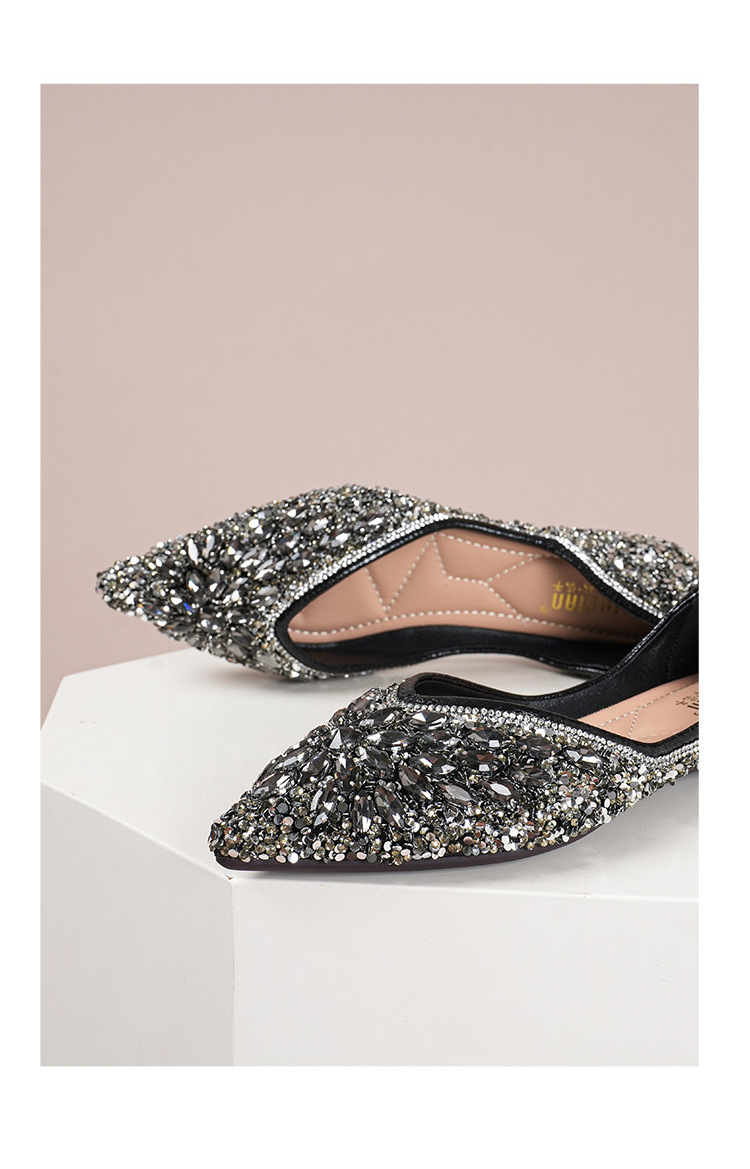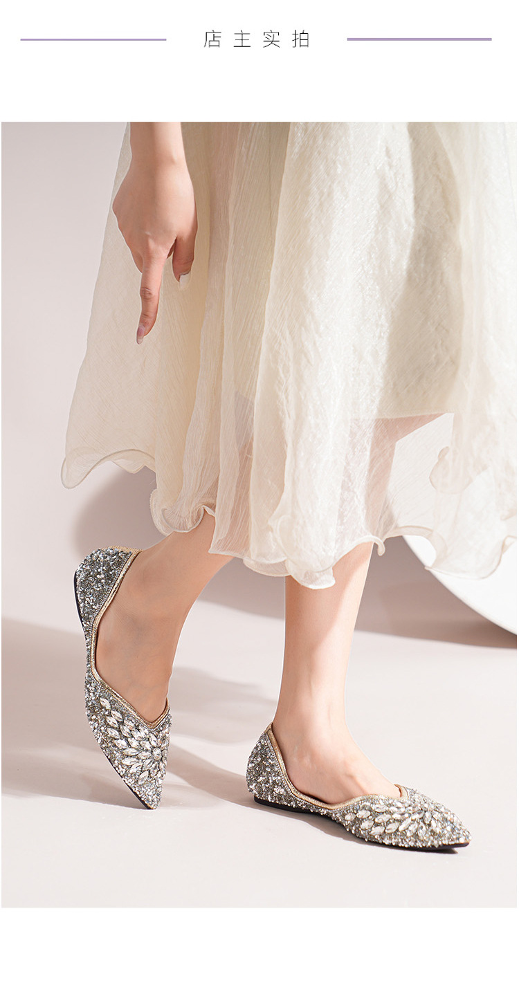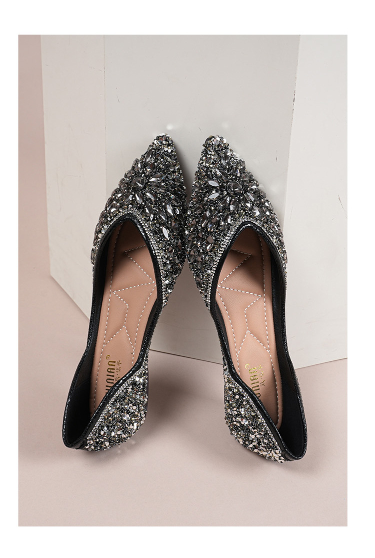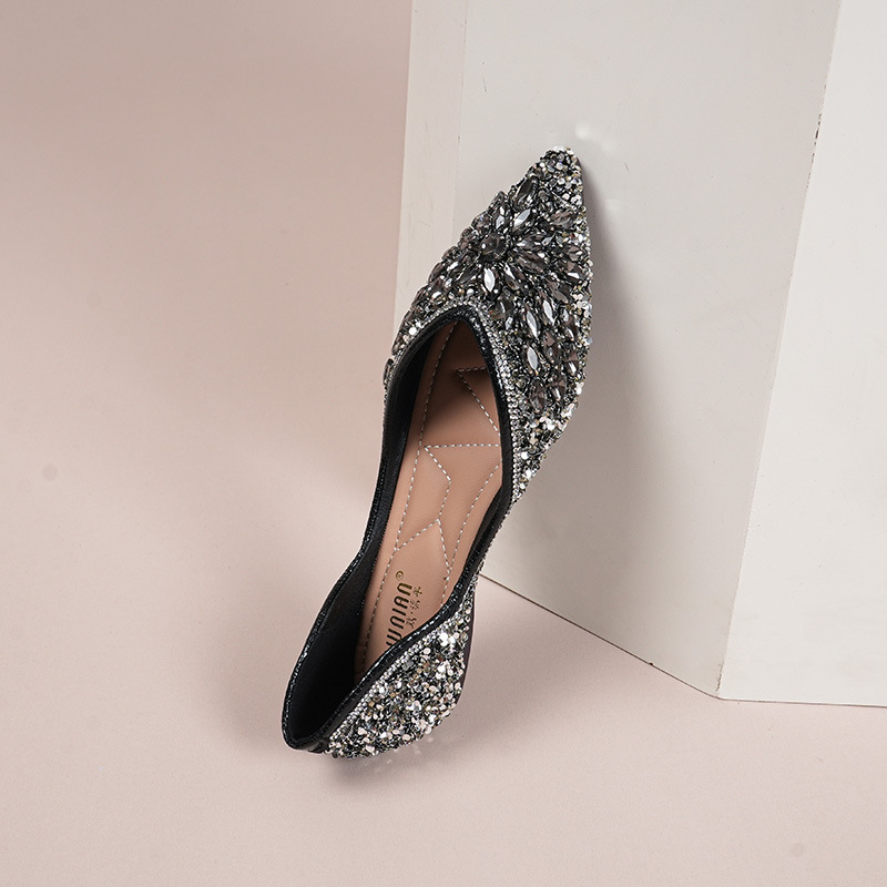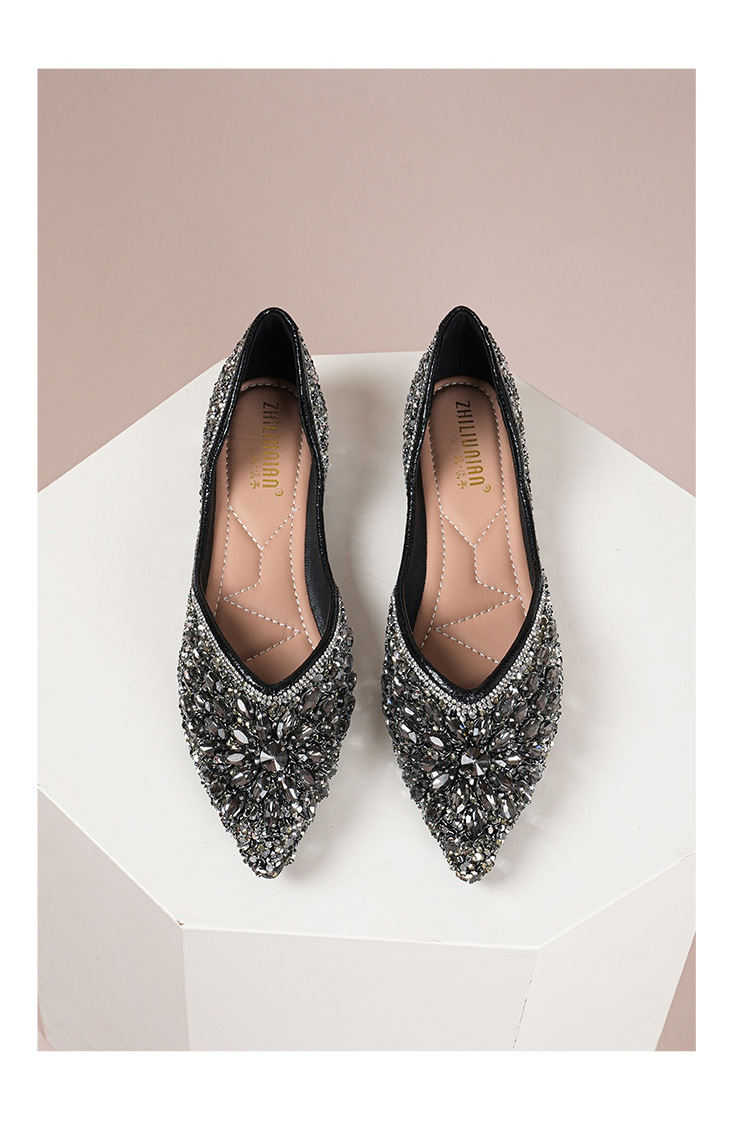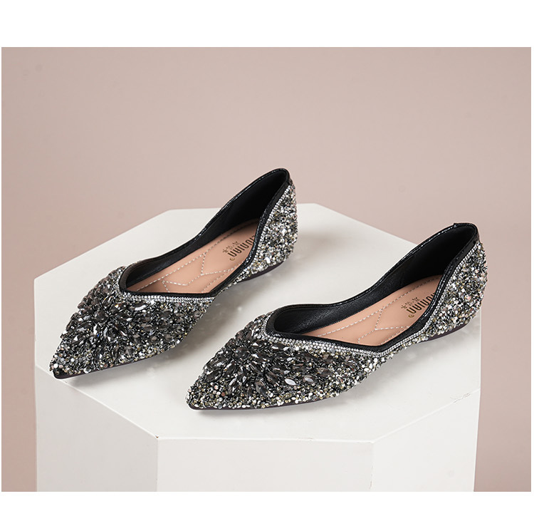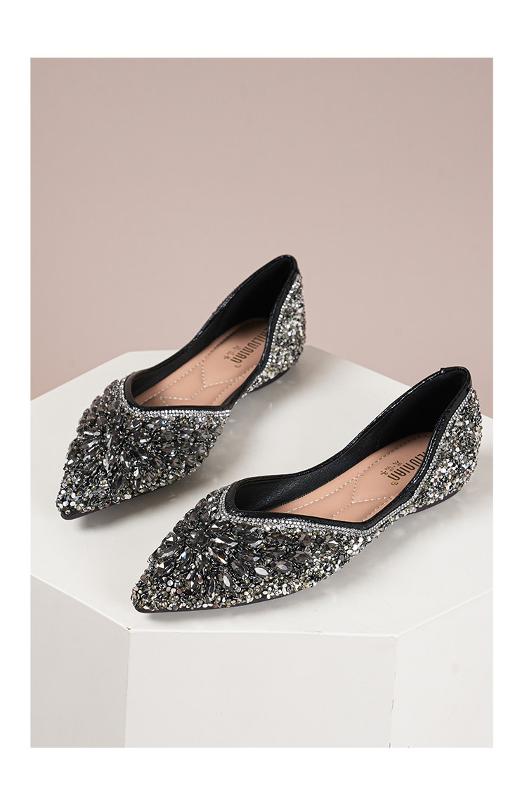 333-9 새로운 라인스톤 싱글 신발 여성 신발 뾰족한 얕은 입 플랫 빈 신발 여성 소프트 솔 조커 신발 풀 다이아몬드 신발스토어 가기
