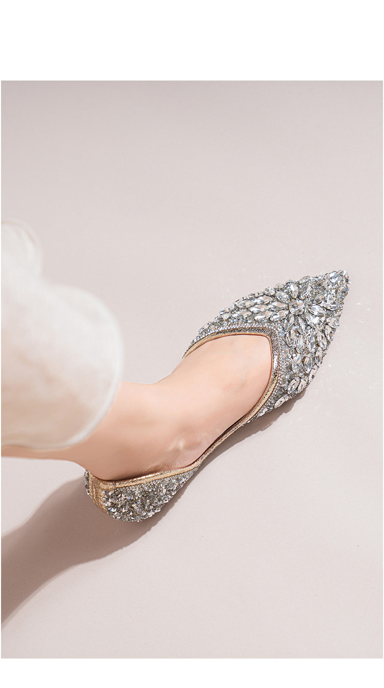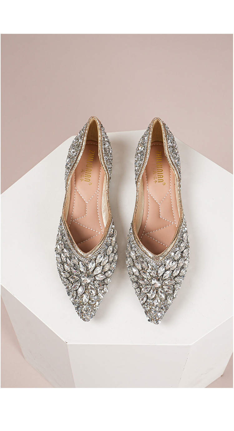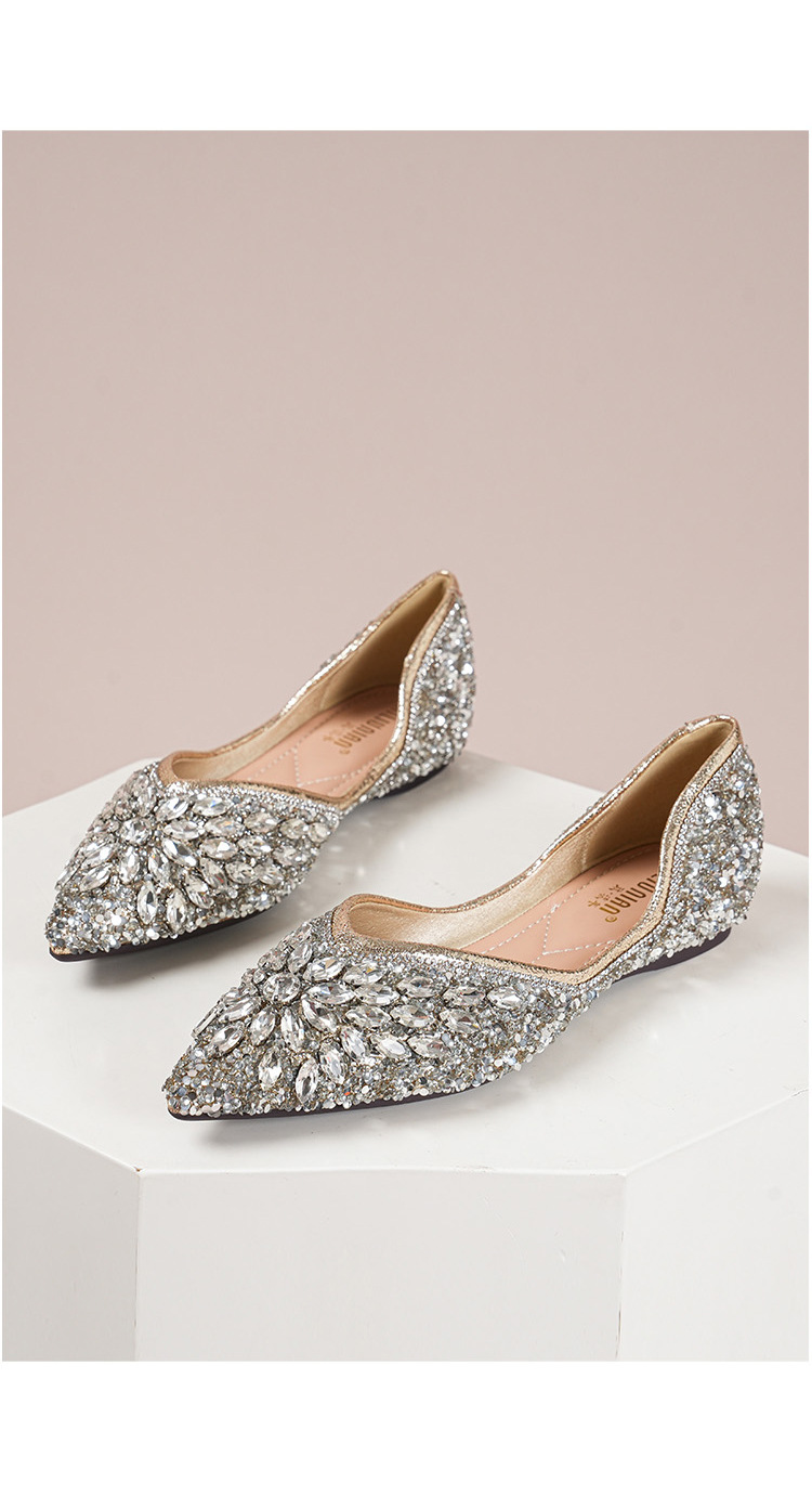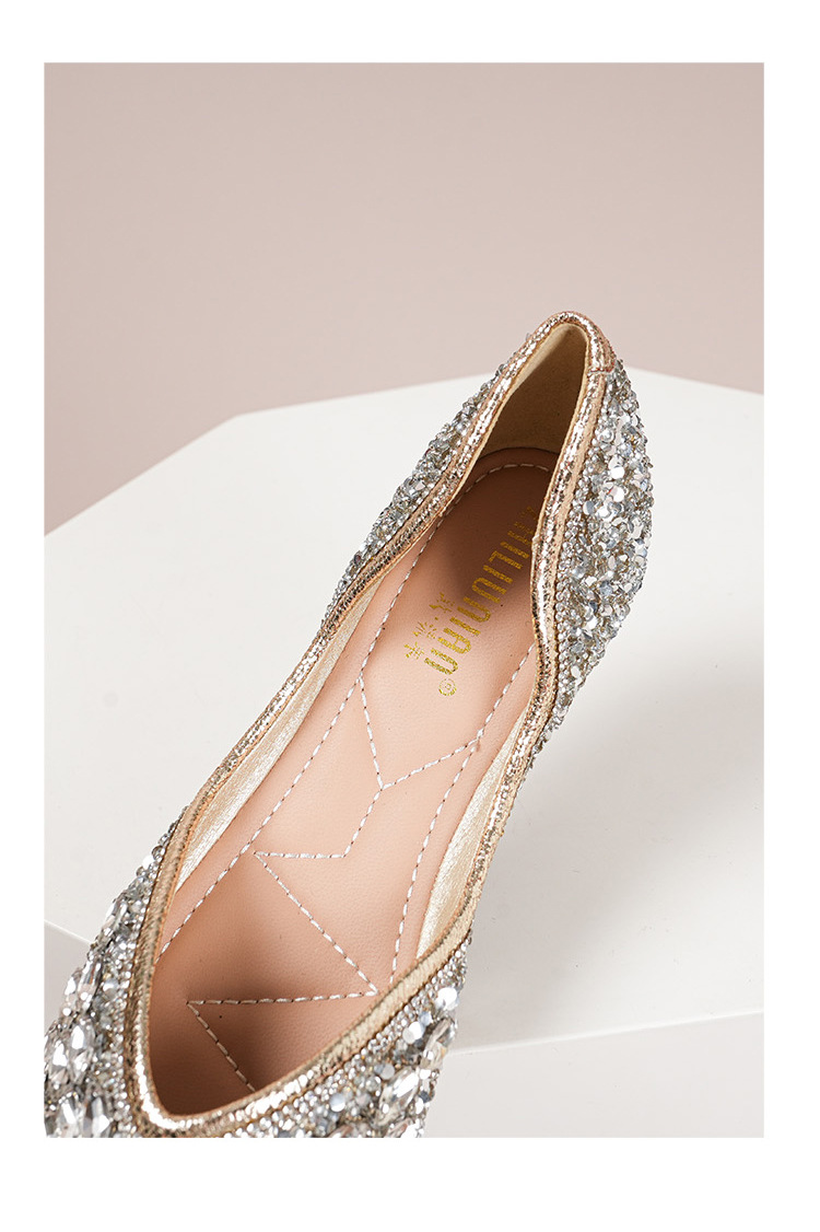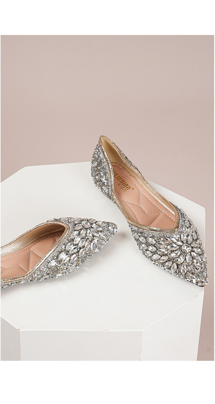 333-9 새로운 라인스톤 싱글 신발 여성 신발 뾰족한 얕은 입 플랫 빈 신발 여성 소프트 솔 조커 신발 풀 다이아몬드 신발스토어 가기