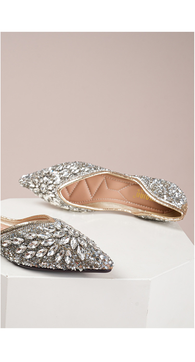 333-9 새로운 라인스톤 싱글 신발 여성 신발 뾰족한 얕은 입 플랫 빈 신발 여성 소프트 솔 조커 신발 풀 다이아몬드 신발